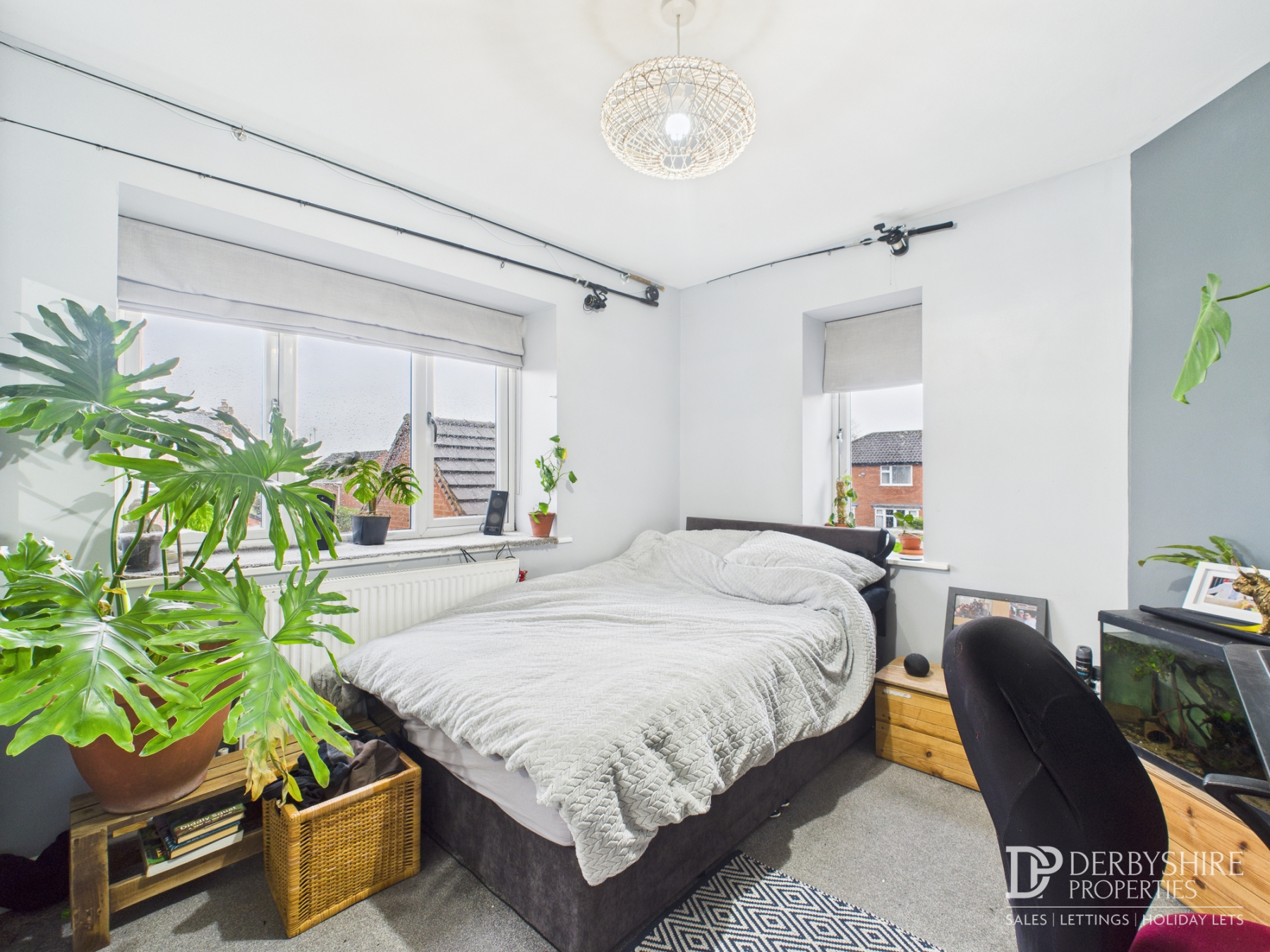 With a rear-facing double-glazed bay window, side window, and radiator, creating a bright and well-proportioned room.
