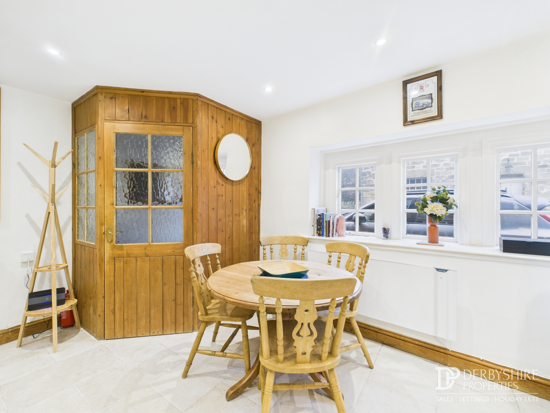 Accessed via a characterful front door, this studded porch offers useful coat storage and seating space, creating a practical and welcoming entrance.