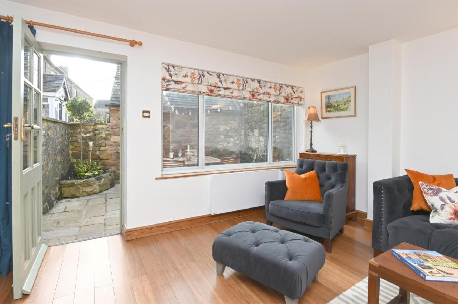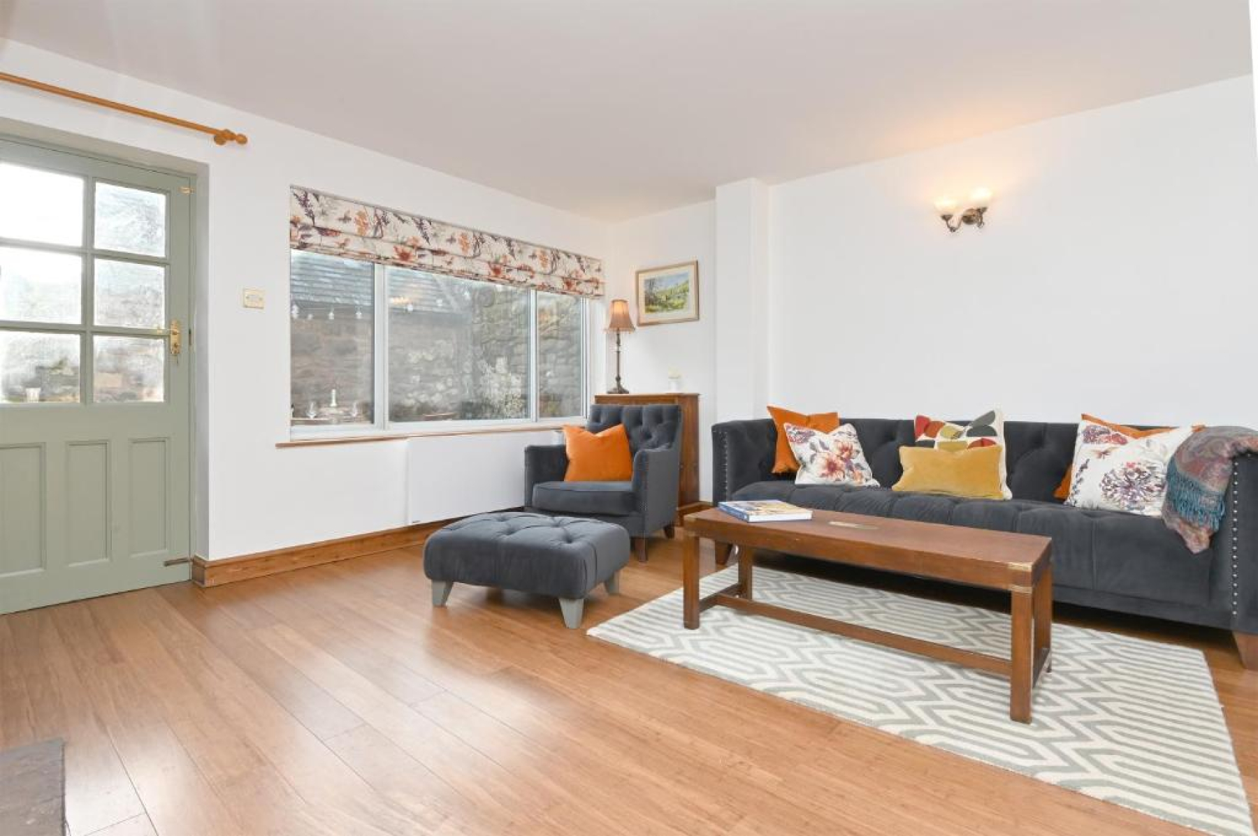 To the rear of the property is a delightful courtyard-style garden, fully enclosed by traditional stone walling. The stone patio area provides an ideal space for outdoor entertaining.