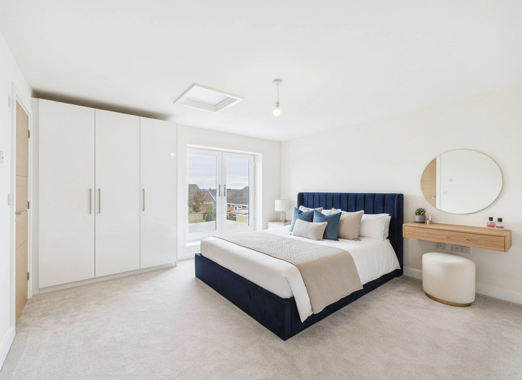 With double glazed French doors opening to a Juliet balcony overlooking the rear elevation, wall-mounted radiator and walk-in wardrobe with radiator and spotlighting.