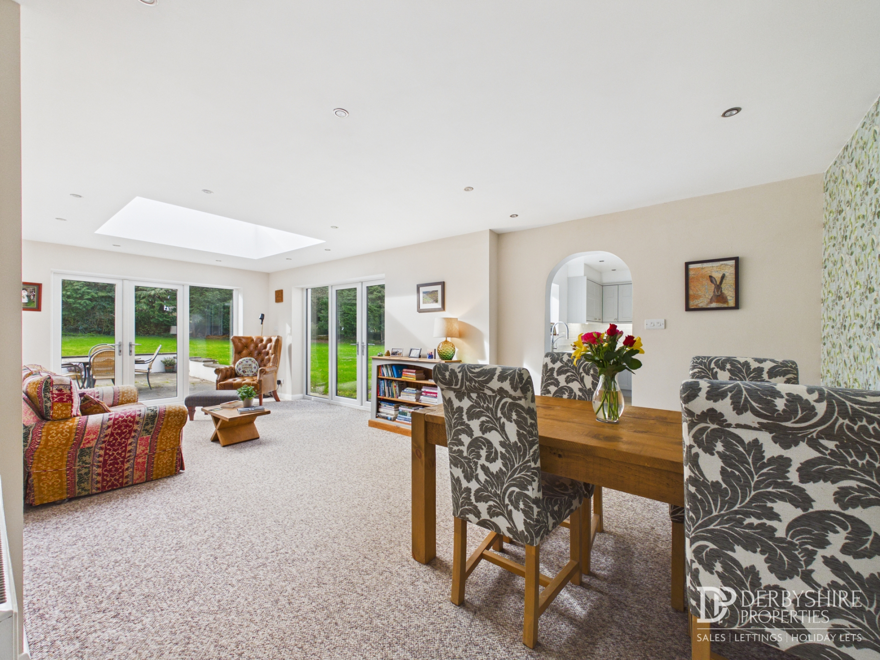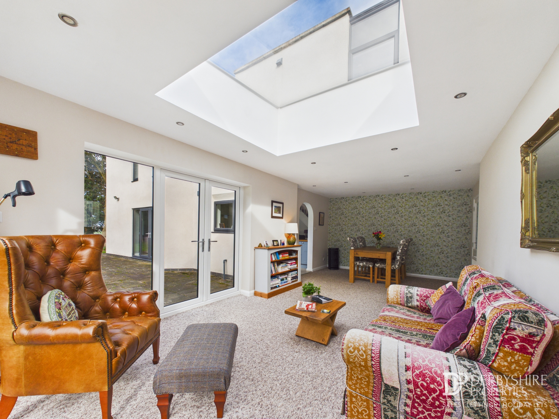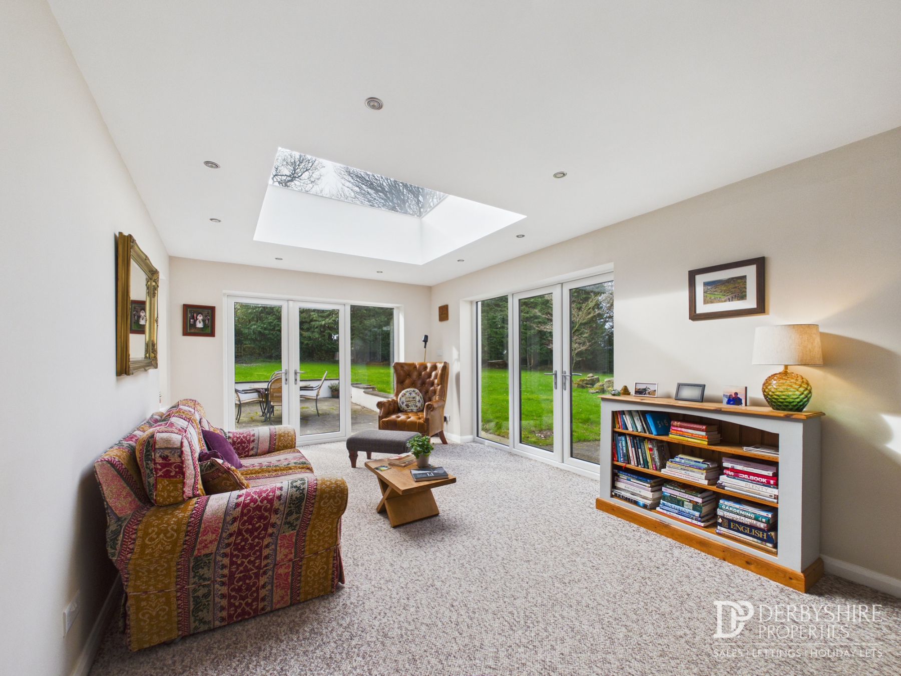7.31m x 3.29m (24' 0" x 10' 10") With roof lantern to ceiling, two wall mounted radiators and carpeted flooring. Double glazed French doors to side and rear elevation form the perfect area to host or relax no matter the season.