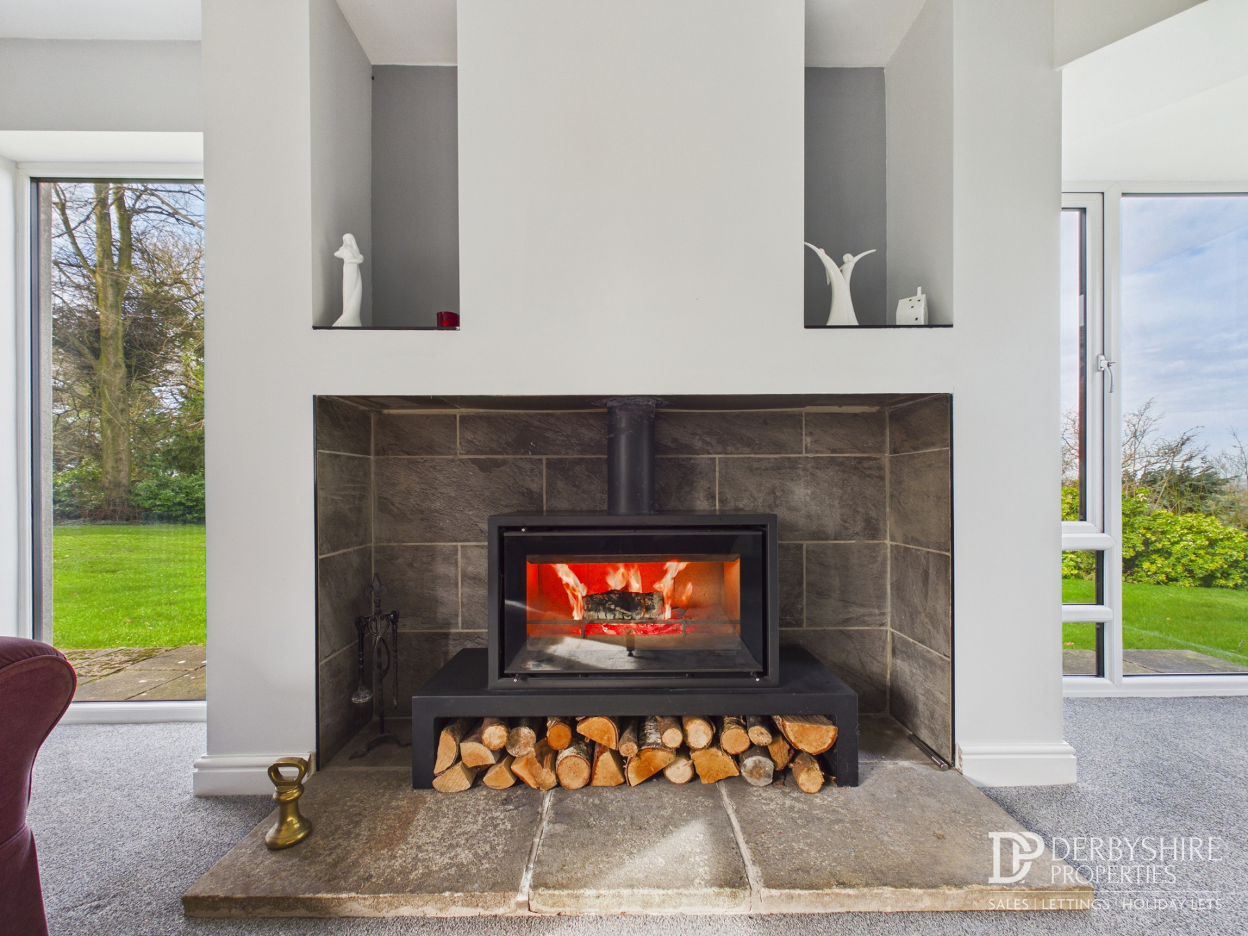 5.37m x 5.03m (17' 7" x 16' 6") Benefitting from a wealth of natural light with floor to ceiling double glazed corner picture window, double glazed window and further double glazed French doors opening to rear garden & patio. Feature fireplace housing multi fuel burner forms the centre piece of this superb space whilst two wall mounted radiators and carpeted flooring complete the area.