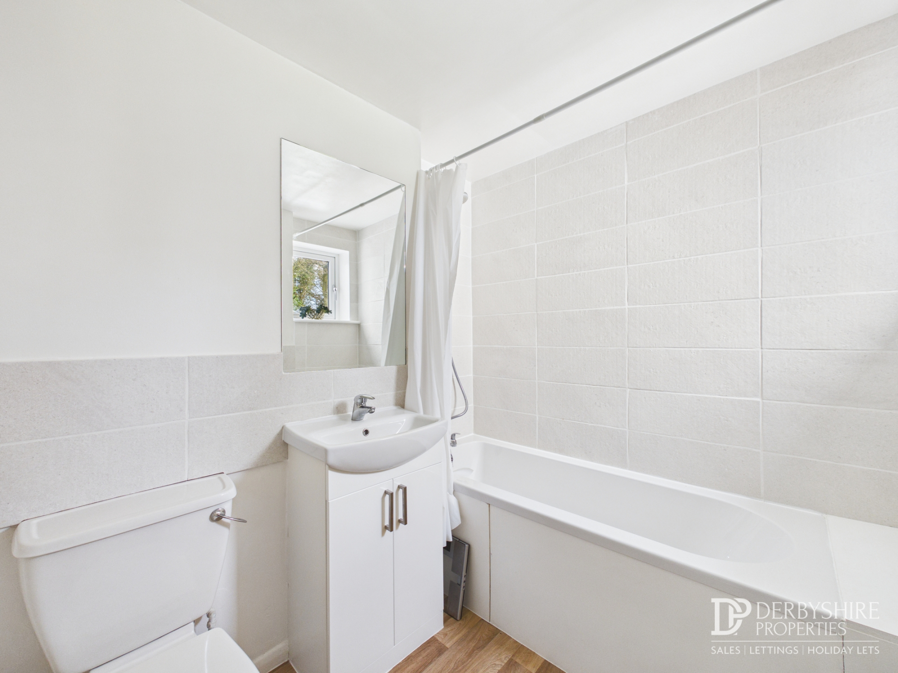 2.18m x 1.65m (7' 2" x 5' 5") A tiled three piece suite including; Bath with shower attachment, vanity handwash basin and low level WC.