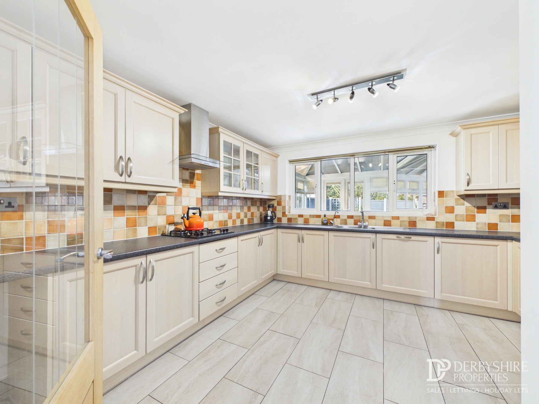 3.78m x 3.68m (12' 5" x 12' 1") Fitted with a range of base and eye level units. Worktop with tiled splash back. Gas hob with extractor hood over. Electric oven. One and a half bowl stainless steel sink unit with mixer tap. Integrated dishwasher. Tiled floor. Radiator. Window through to the conservatory.