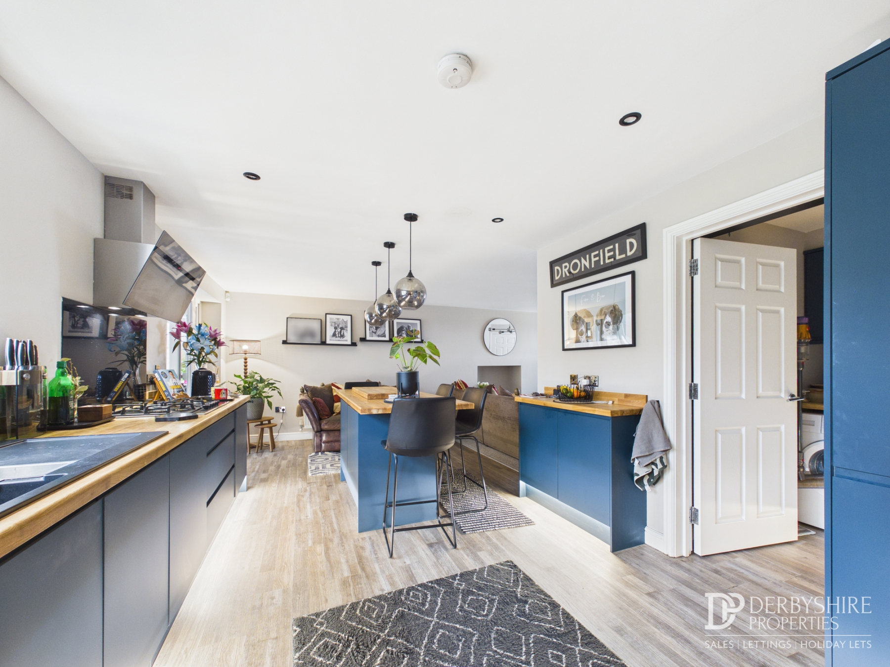 A superb family space. The Living area features double glazed window to rear elevation, wall mounted radiator and carpeted flooring. Understairs storage recess provides further space. The kitchen diner features a range of base cupboards and eye level units with complimentary wood worktops over and a range of fitted appliances including; Oven, microwave oven, five ring gas hob with accompanying extractor hood and integrated dishwasher. Inset one and a half bowl sink sits beneath double glazed window to rear elevation whilst kitchen island/breakfast bar benefits from further storage capacity. Wood effect flooring extends to Utility Room.