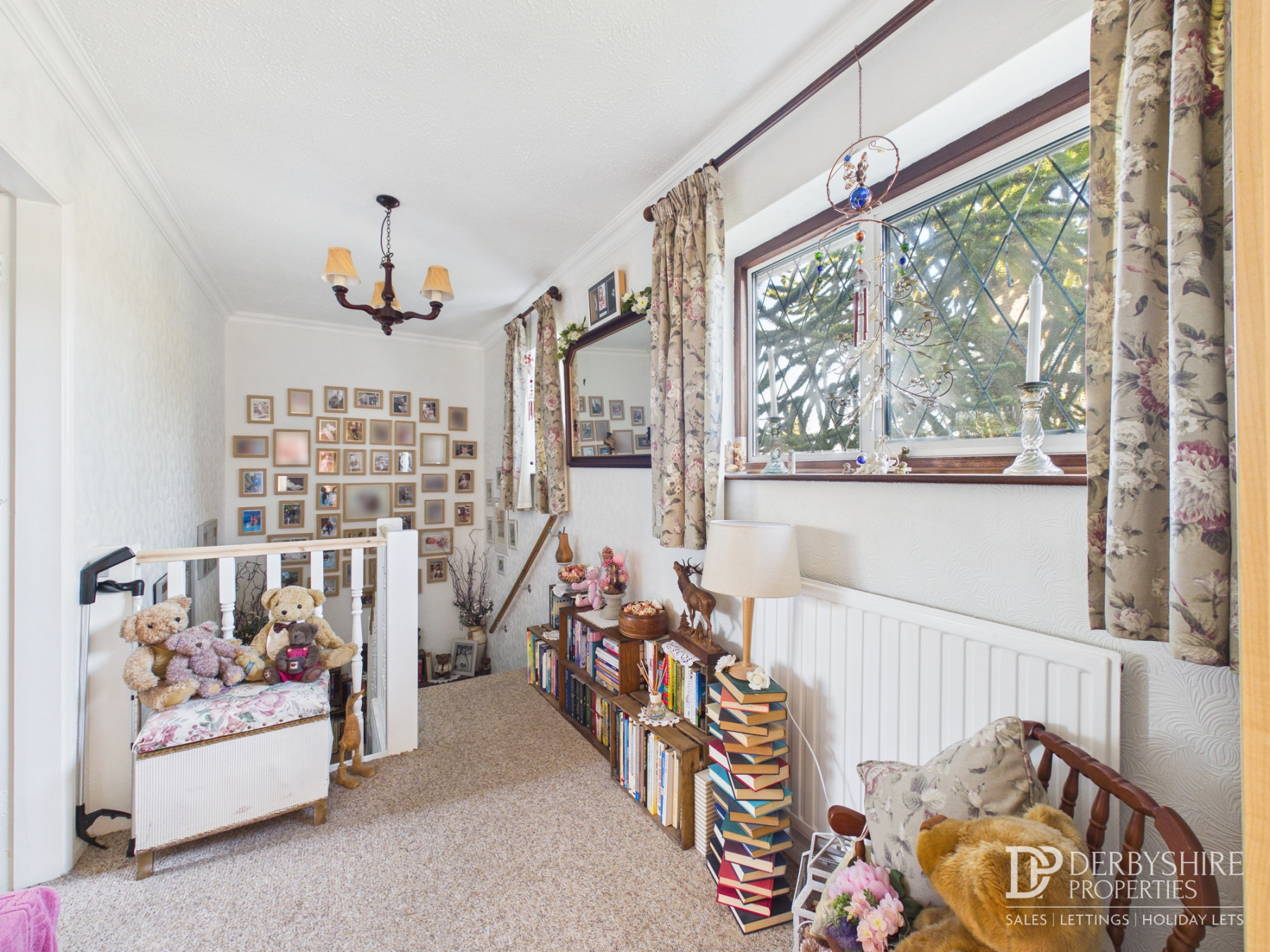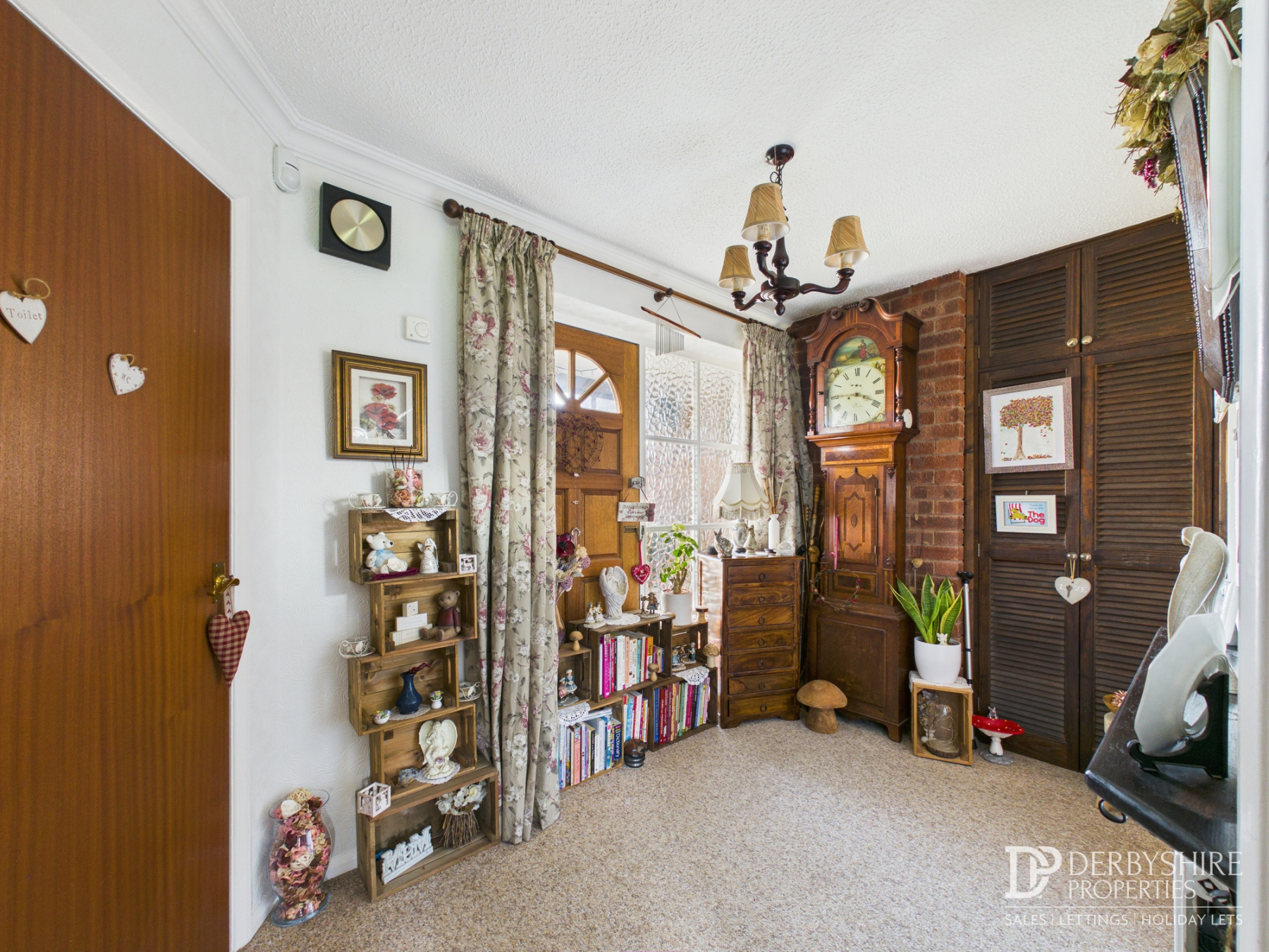 Accessed via porch with wall mounted radiator, carpeted flooring and doorways to;