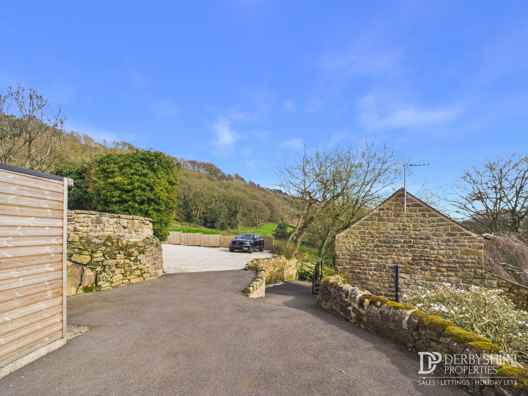 To the rear of the property, a driveway provides access to the garage, ample parking area, stable block, land, and annex. There is generous parking available for multiple vehicles, including space for trailers.