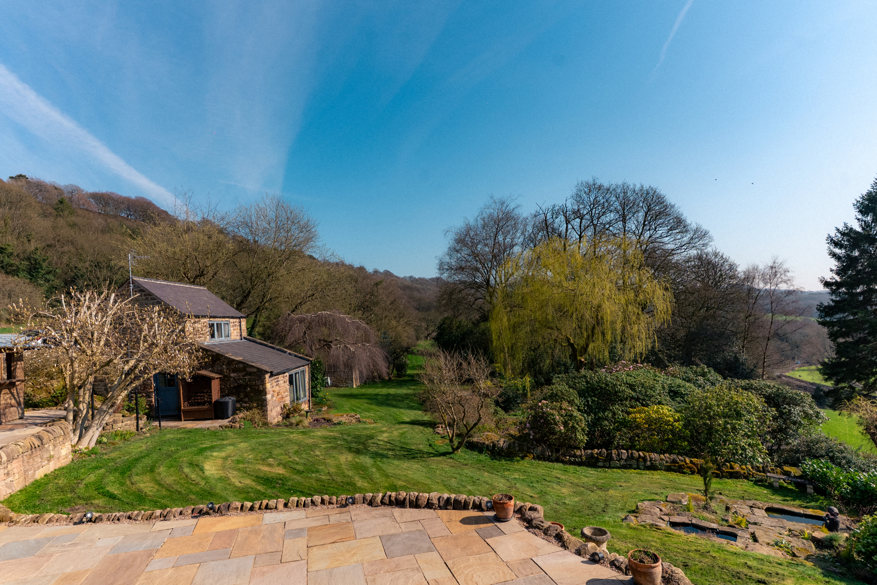 The property is set within extensive and beautifully maintained gardens, featuring well-stocked planted borders, a generous patio area ideal for outdoor dining and entertaining, and a formal lawn complemented by a wide variety of flowers, shrubs, and mature trees. Additional features include a charming pond, rockery, and a woodland area, all connected by a network of pathways leading from the courtyard to the annex and driveway. The grounds enjoy stunning long-distance rural views, creating a peaceful and picturesque setting.