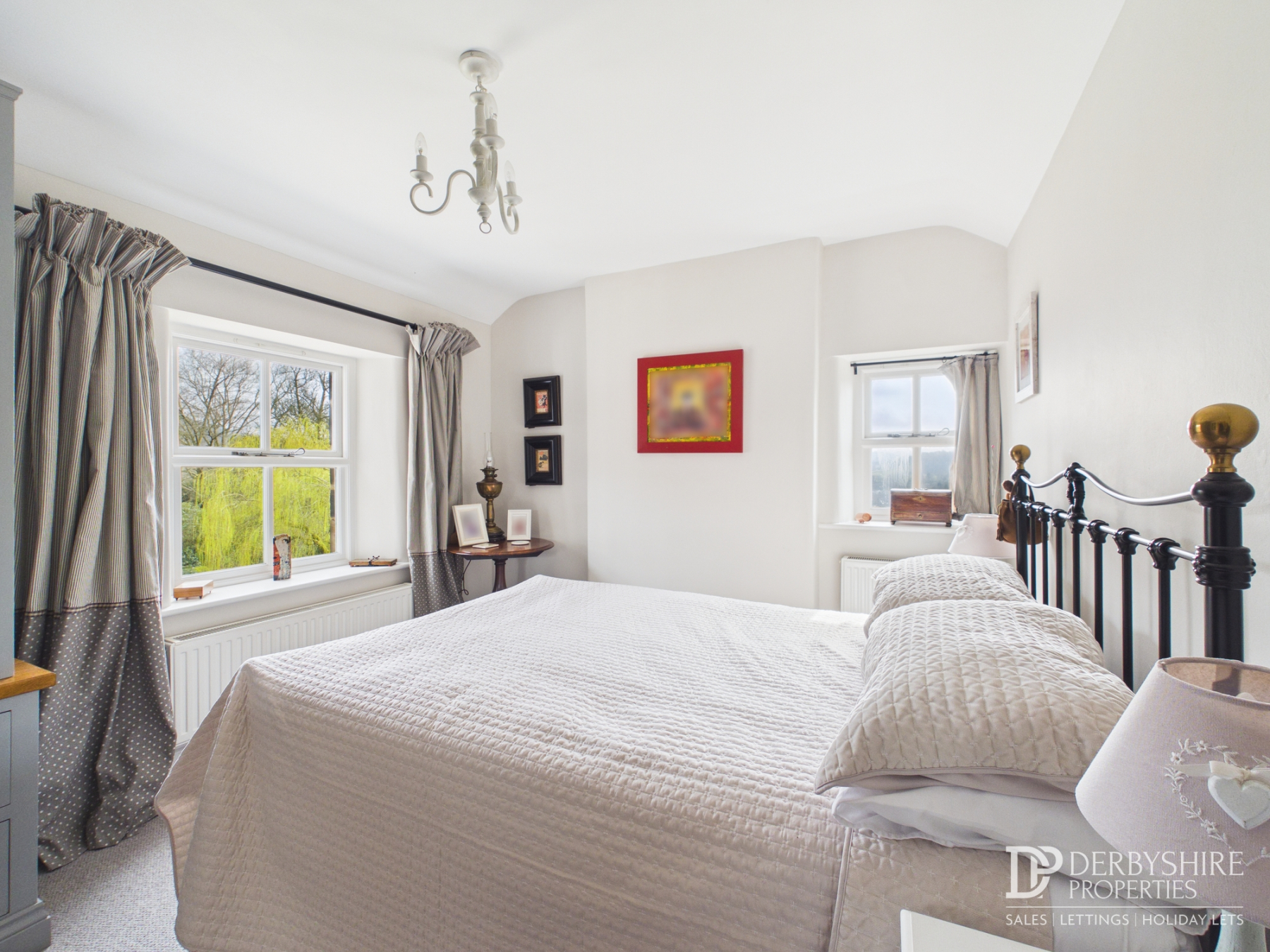 A dual-aspect double bedroom with windows to the rear and side elevations, both offering beautiful views over the gardens and surrounding countryside, radiator and TV point.