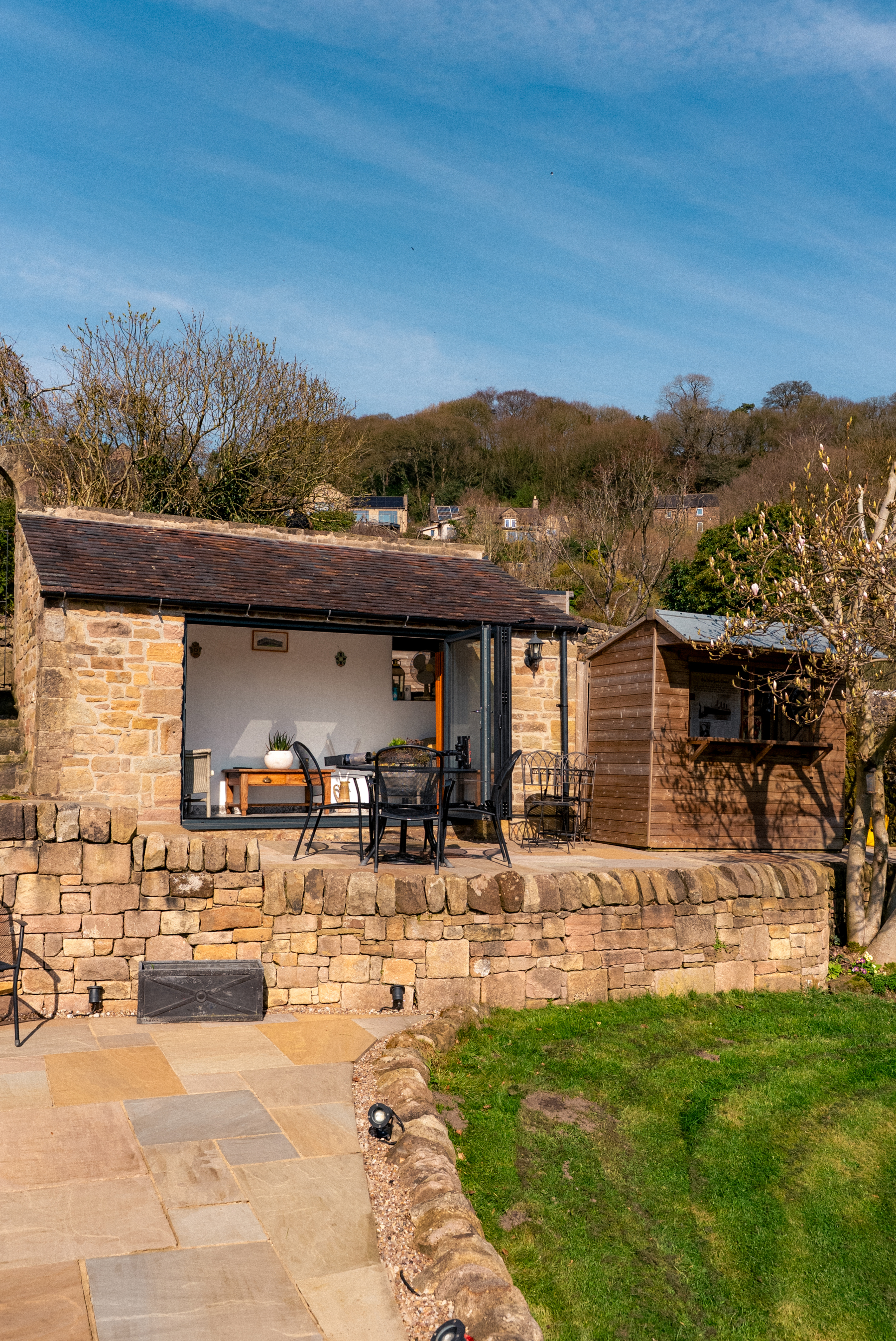 A recently converted stone outbuilding offering a versatile space ideal for entertaining or a home office /hobby room. The room benefits from large bi-folding doors opening onto the garden, a rear window, decorative tiled flooring, power and lighting.