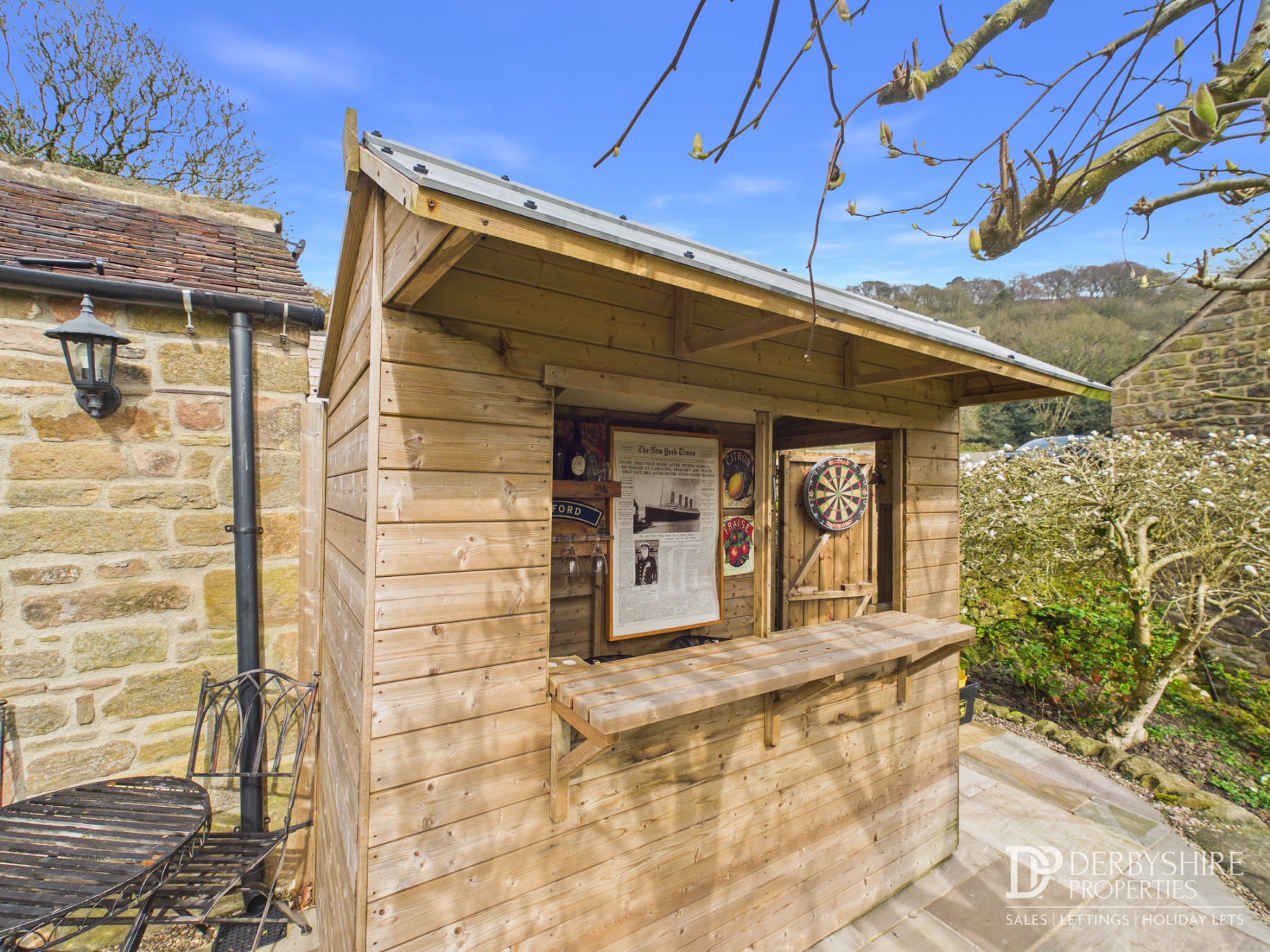Constructed from timber and located next to the garden room is this useful outside bar that services the main terrace.