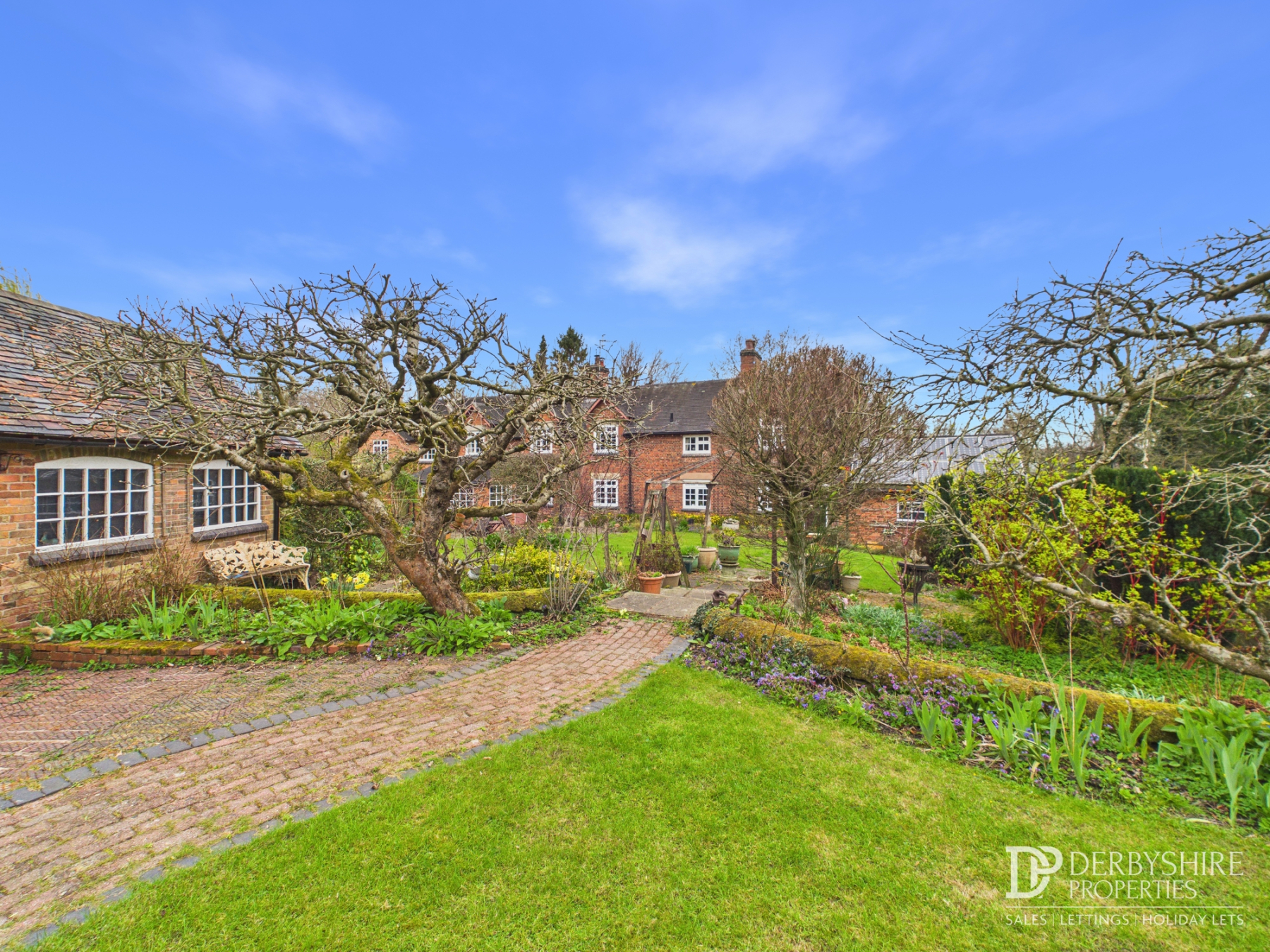 The grounds themselves are a true highlight—an idyllic oasis extending to around one acre, beautifully landscaped and attracting an array of wildlife, with direct access to countryside walks across adjoining fields. Despite its peaceful rural setting, the property remains well connected. The M1 motorway lies approximately six miles away, and rail services from nearby Derby provide regular links to London in around 90 minutes. A range of local amenities, including shops, schools, and healthcare facilities, are also within easy reach.
