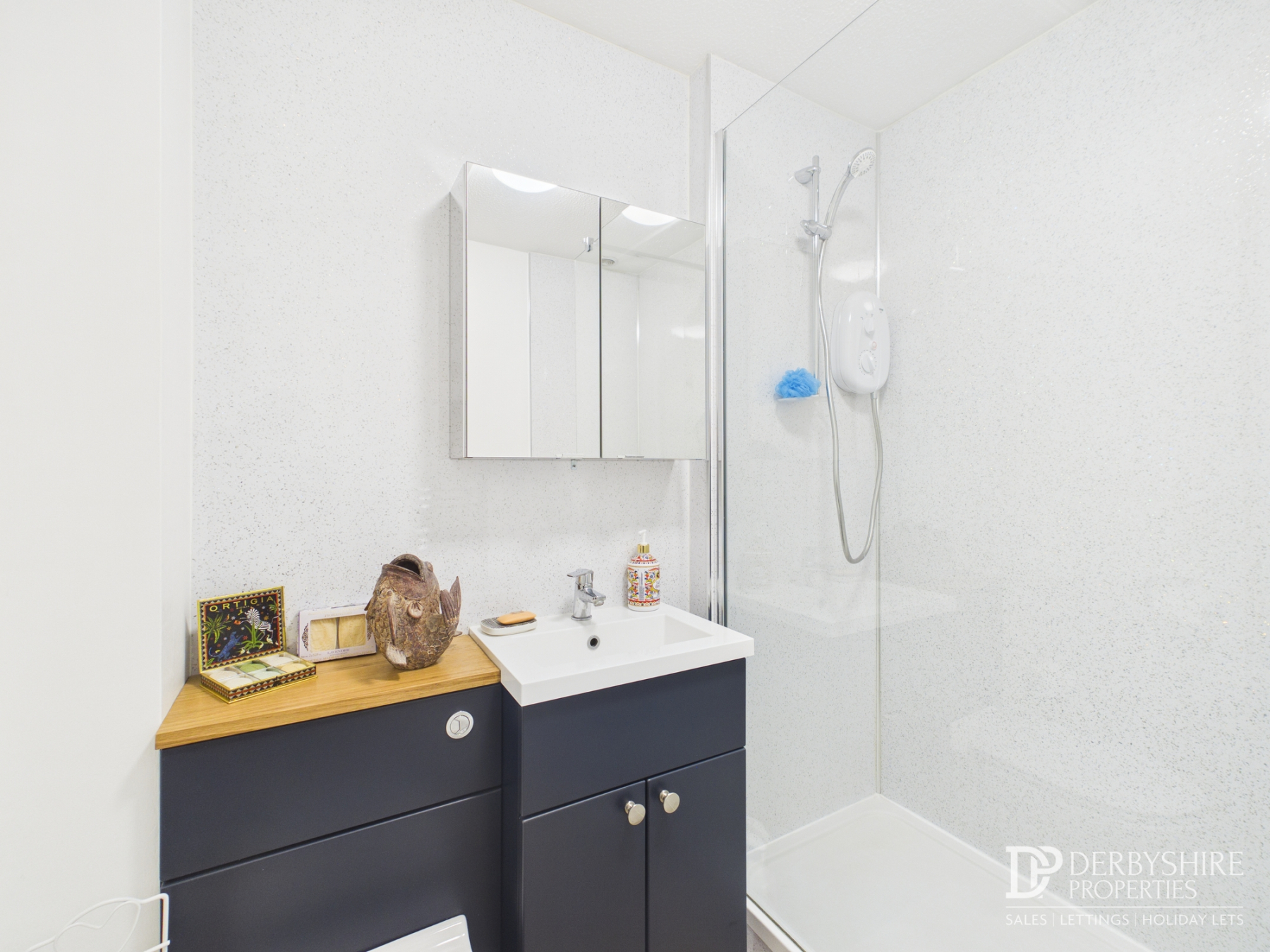 Comprising of a encased WC with attached vanity unit and large shower enclosure, wall mounted electric shower and attachment with floor to ceiling shower screen. Wall mounted chrome heated towel rail, LTV floor covering, linen storage cupboard and ceiling mounted loft access point.