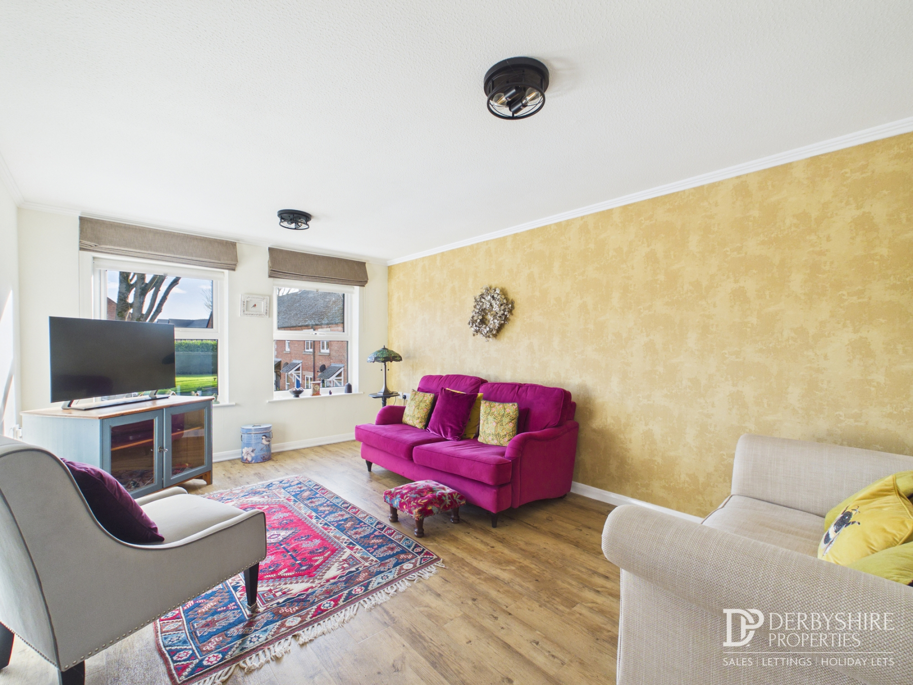 With the continuation of the LTV floor covering from the landing, two double glazed windows to front elevation, wall mounted modern radiator, TV and telephone points.