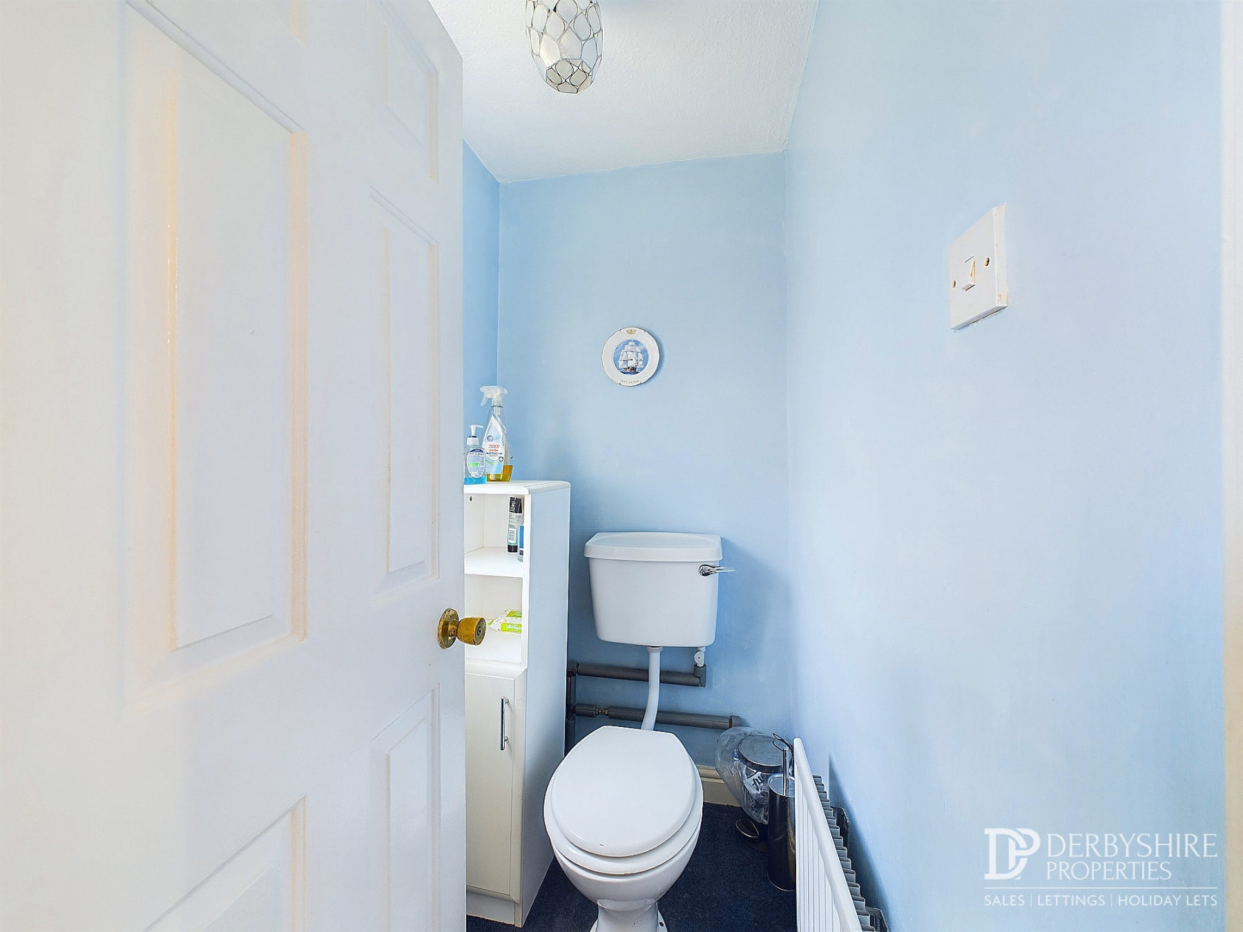 Featuring pedestal handwash basin and low level WC. Mini wall mounted radiator, carpeted flooring and double glazed obscured window to front elevation also feature.