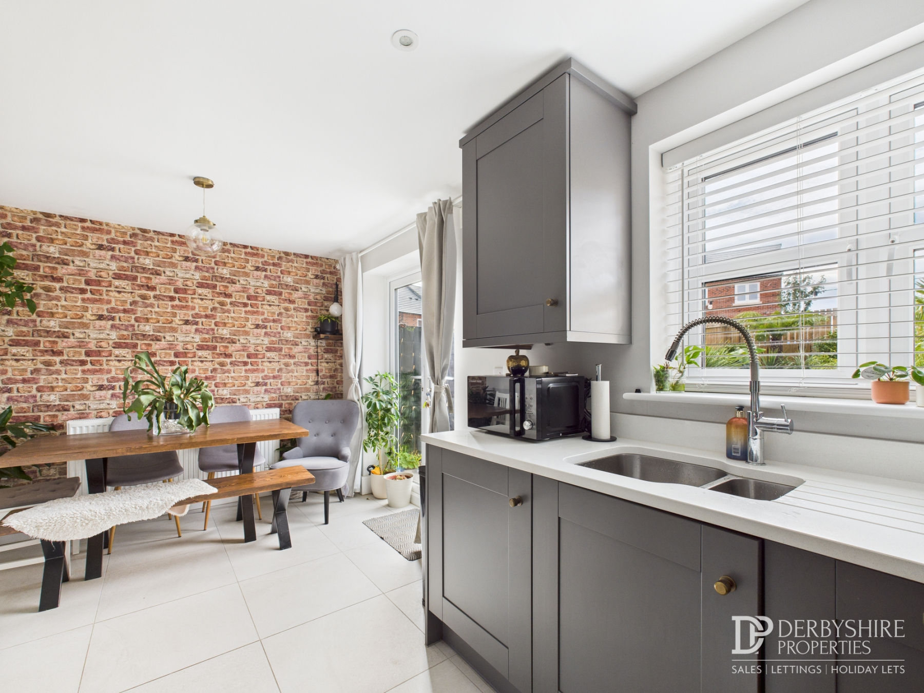 Derbyshire Properties are delighted to present this superb modern three-bedroom semi-detached home, built just two years ago by the highly regarded Wheeldon Homes and situated within the sought-after Buttercup Fields development. Offering stylish and contemporary living, the property features high-quality fixtures and fittings throughout, including a beautifully appointed kitchen, family bathroom, and an en-suite shower room to the master bedroom. The current owners have further enhanced the home with a professionally landscaped rear garden, creating an attractive and low-maintenance outdoor space ideal for relaxing and entertaining. Externally, the property also benefits from a driveway providing off-road parking for two vehicles, together with a detached brick-built garage. This rare house type is expected to appeal to young professionals, couples, and small families alike. An early internal inspection is strongly recommended to fully appreciate the quality and presentation on offer.