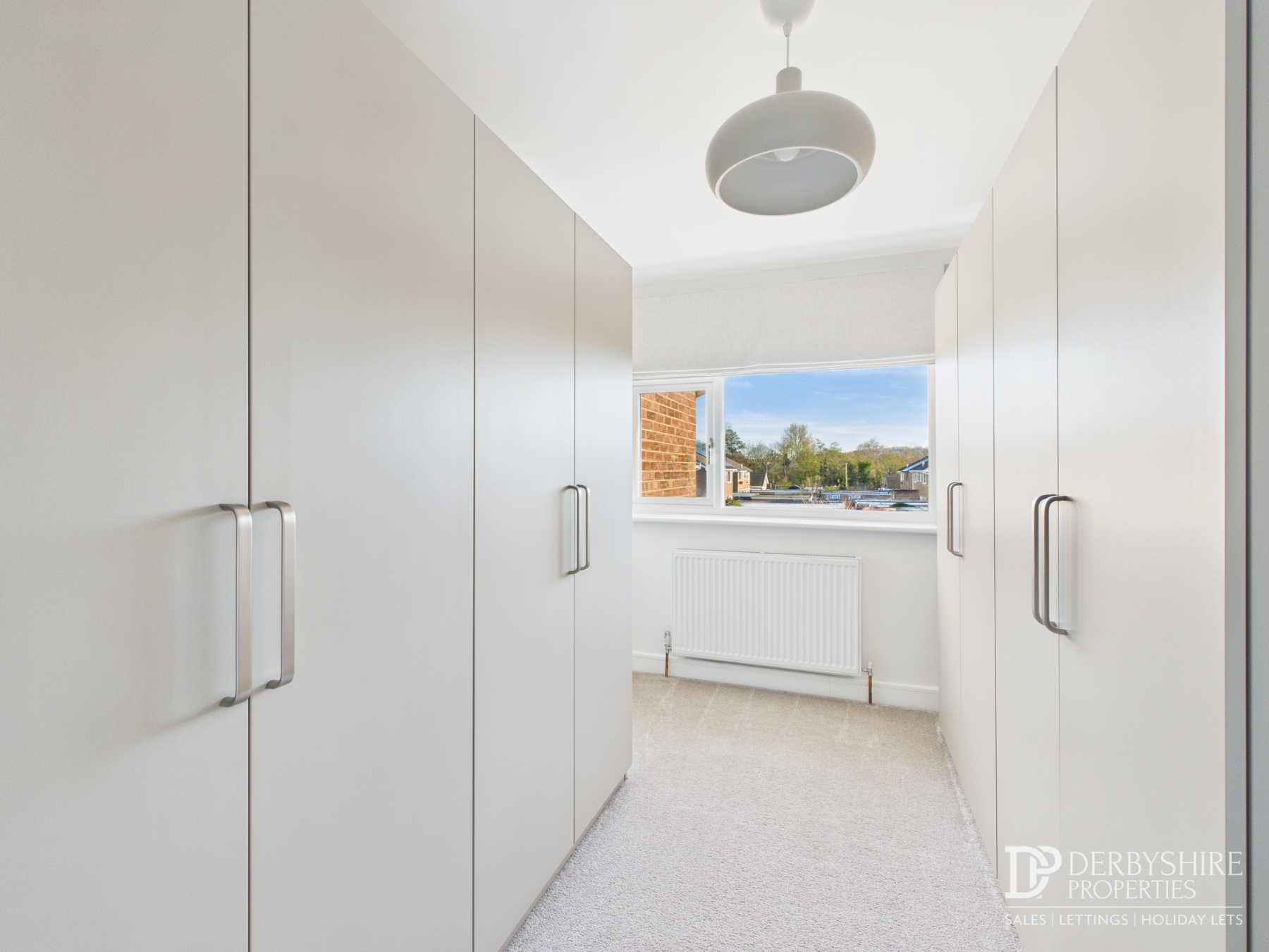 Currently used as a dressing room, this double bedroom features freestanding wardrobes that can be easily removed if required, along with a double-glazed window to the front elevation and a wall-mounted radiator.