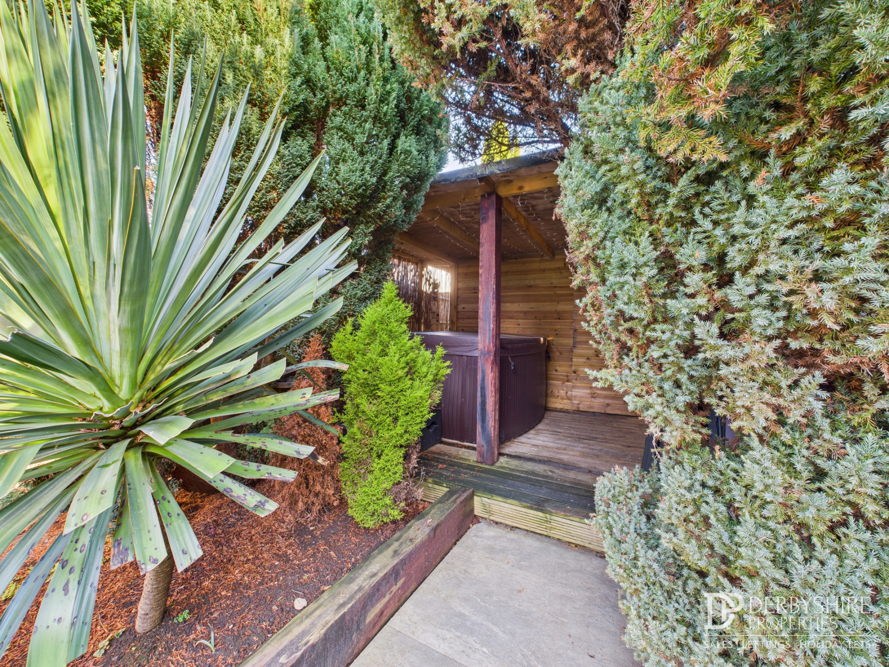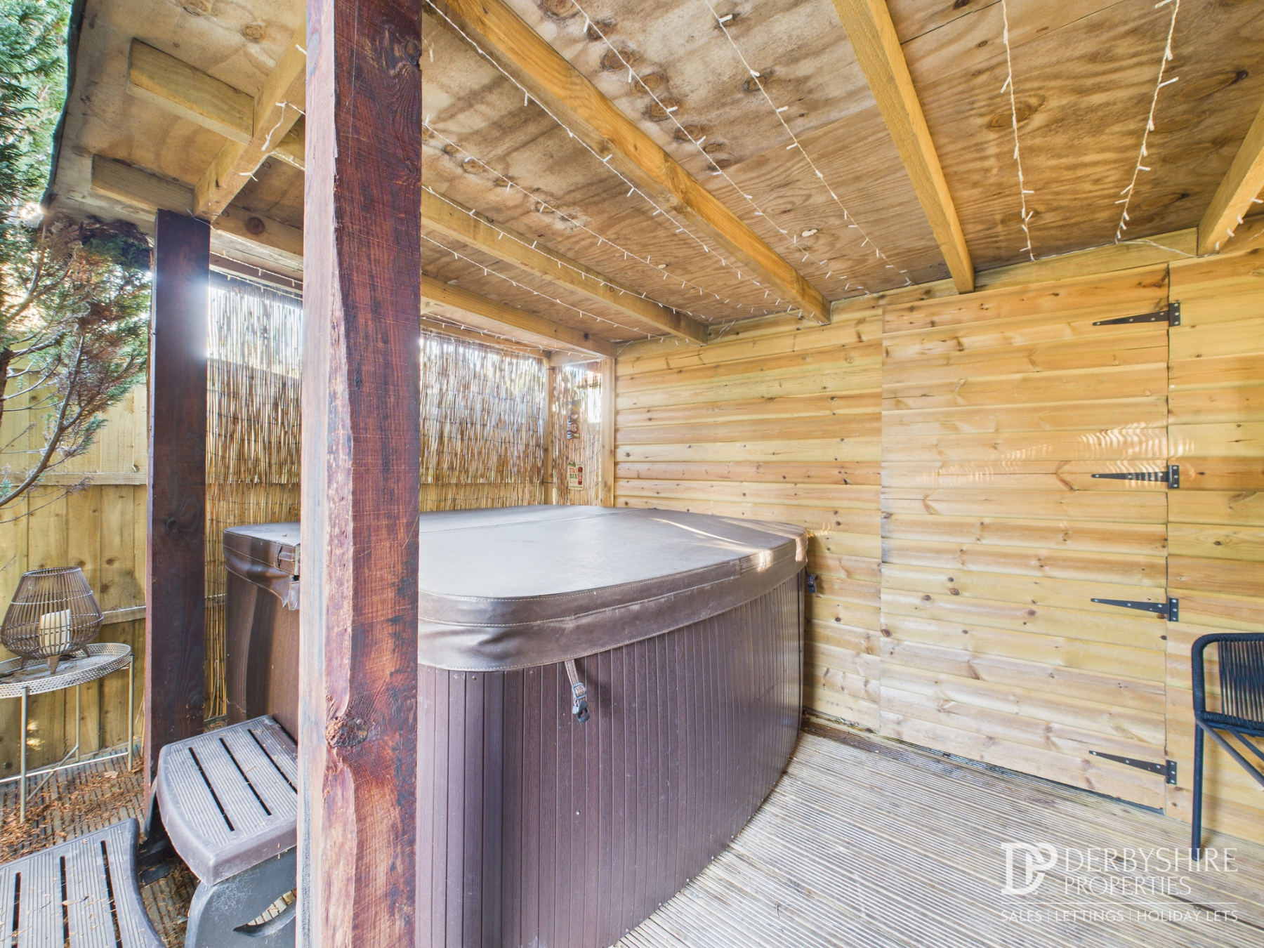 Externally, the property benefits from block paved driveway parking for two vehicles to the front elevation with steps leading to entrance door and access to rear enclosed garden via cast iron gate and pathway. The rear enclosed garden is a wonderful private area with two porcelain tiled patio spaces, artificial turf with raised timber planters to border. Decked hot tub area features light, power and shelter forming the perfect space to entertain no matter the season. Sizeable shed allows for impressive amount of garden storage whilst timber fencing secures the area making it ideal for those with pets and young children.