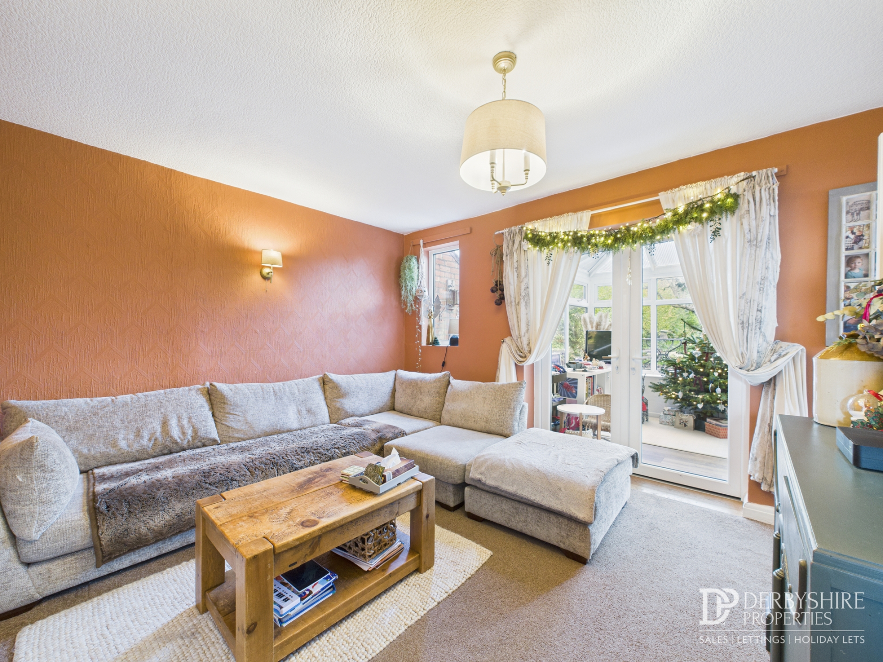 Featuring a wall-mounted double radiator, decorative wall lighting, window to the rear elevation and TV point. Double-glazed French doors provide access to the conservatory.