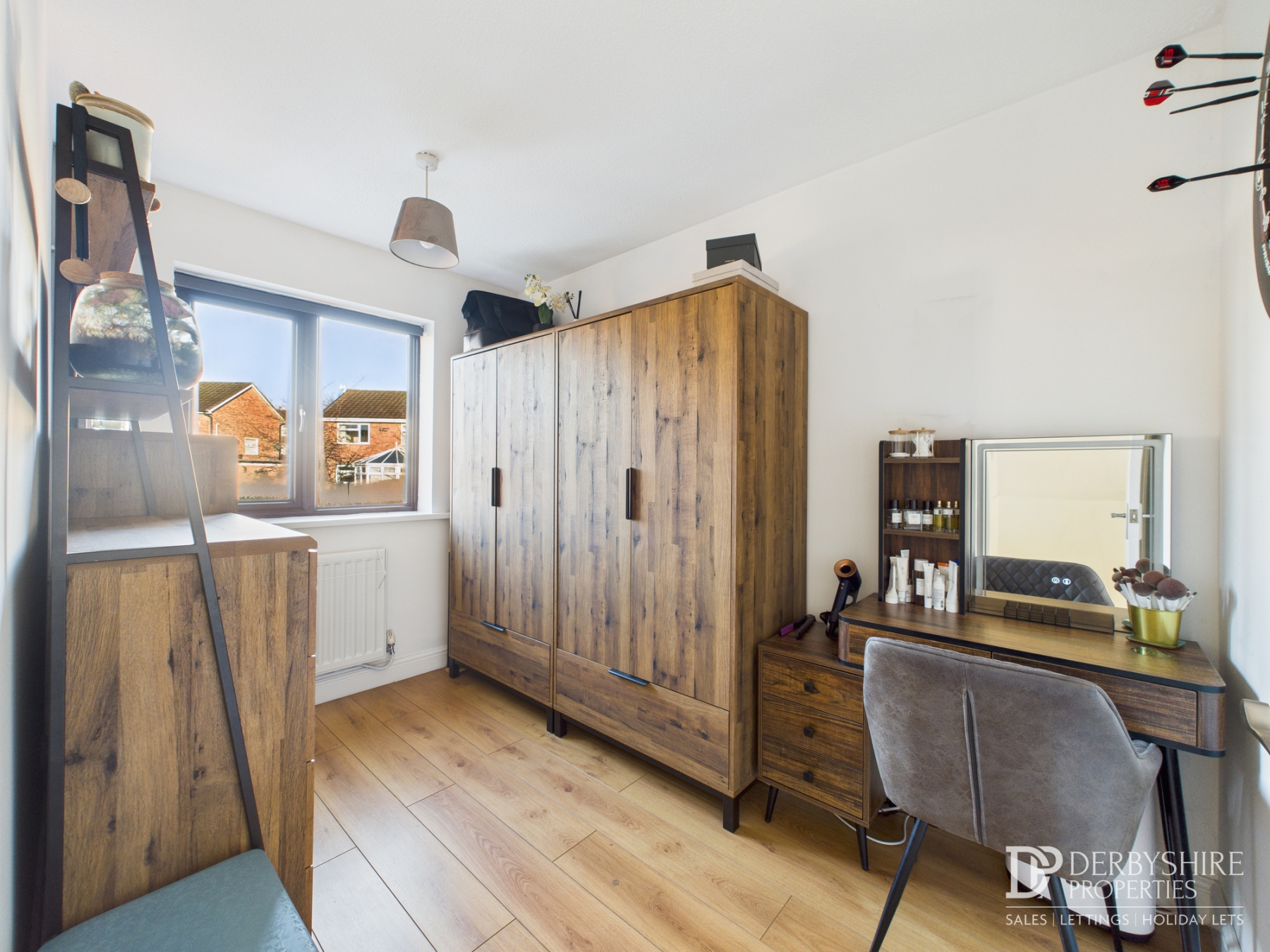 3.51m x 2.89m (11' 6" x 9' 6") With double glazed window to front elevation, wall mounted radiator and wood effect flooring. Fitted wardrobe over stairs provides valuable storage/hanging capacity.