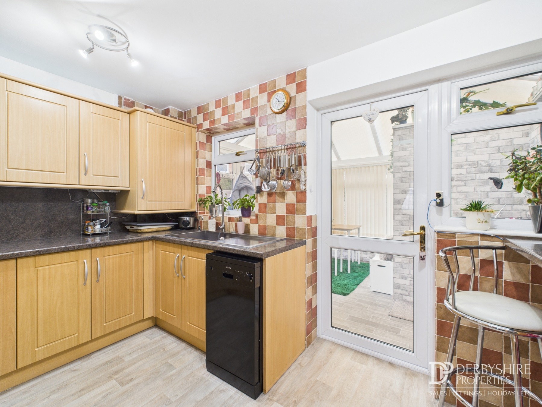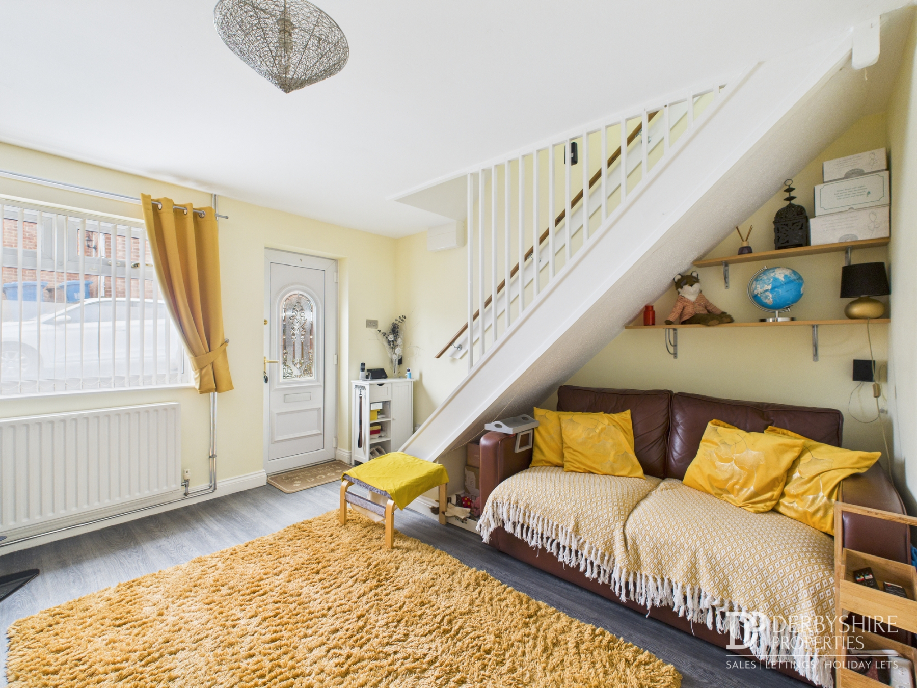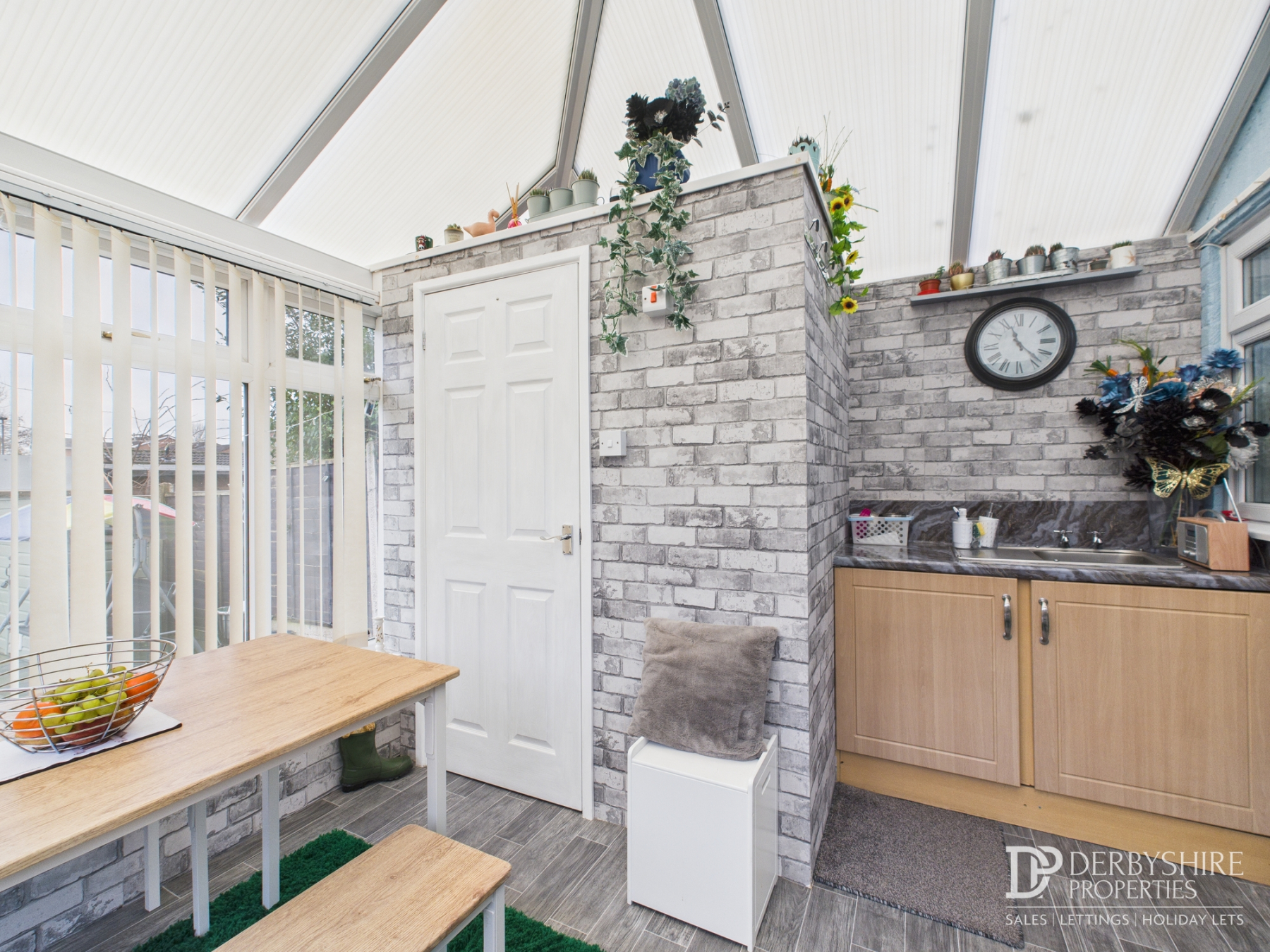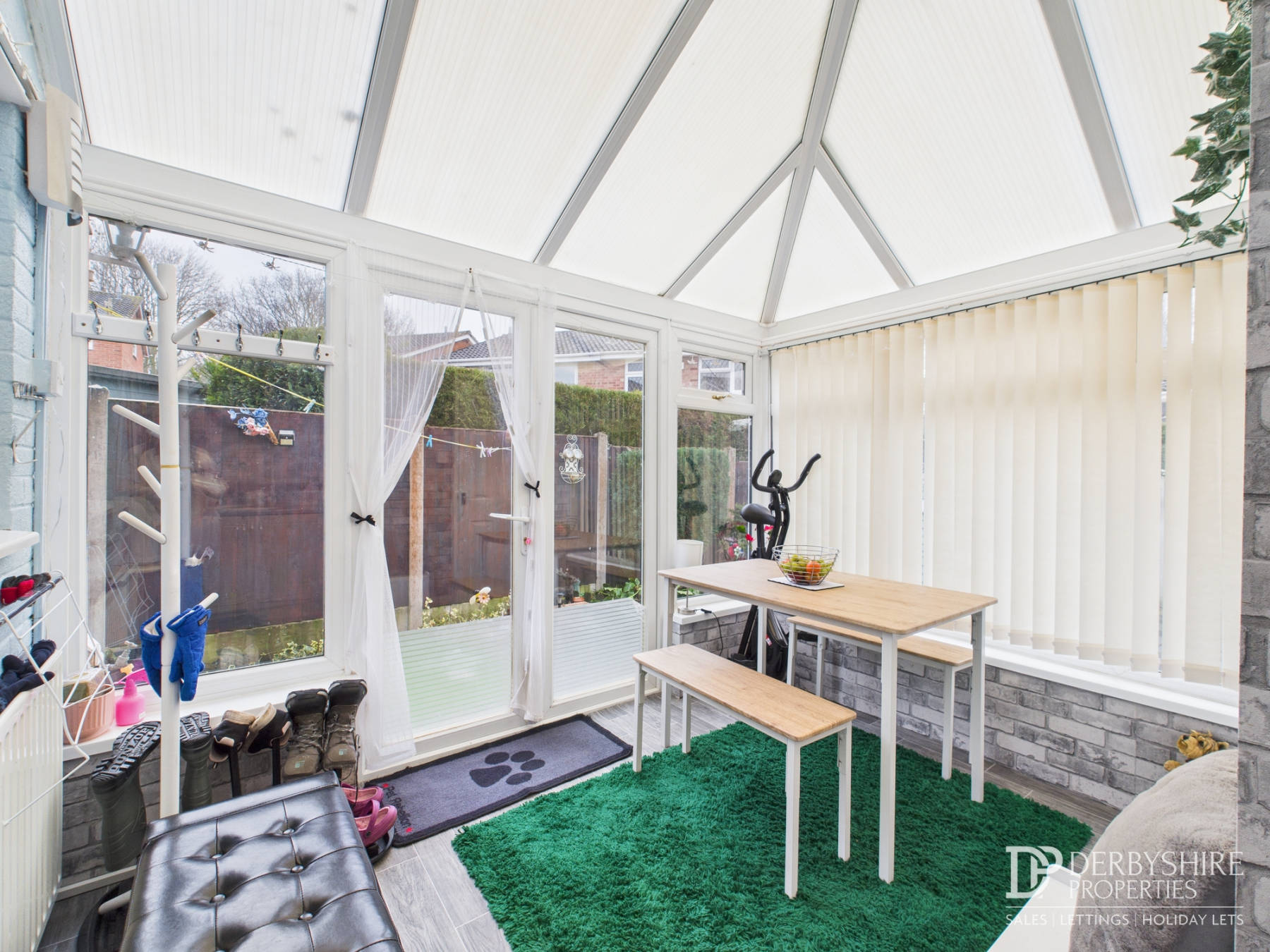Derbyshire Properties are delighted to offer for sale this well-presented and extended two-bedroom semi-detached home, situated on an unusually large corner plot. The accommodation briefly comprises a living room, fitted kitchen, and conservatory incorporating a ground-floor shower room and utility area. To the side elevation, there is a practical storage lean-to.
