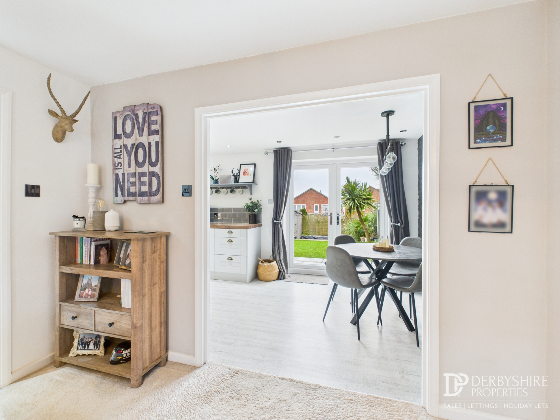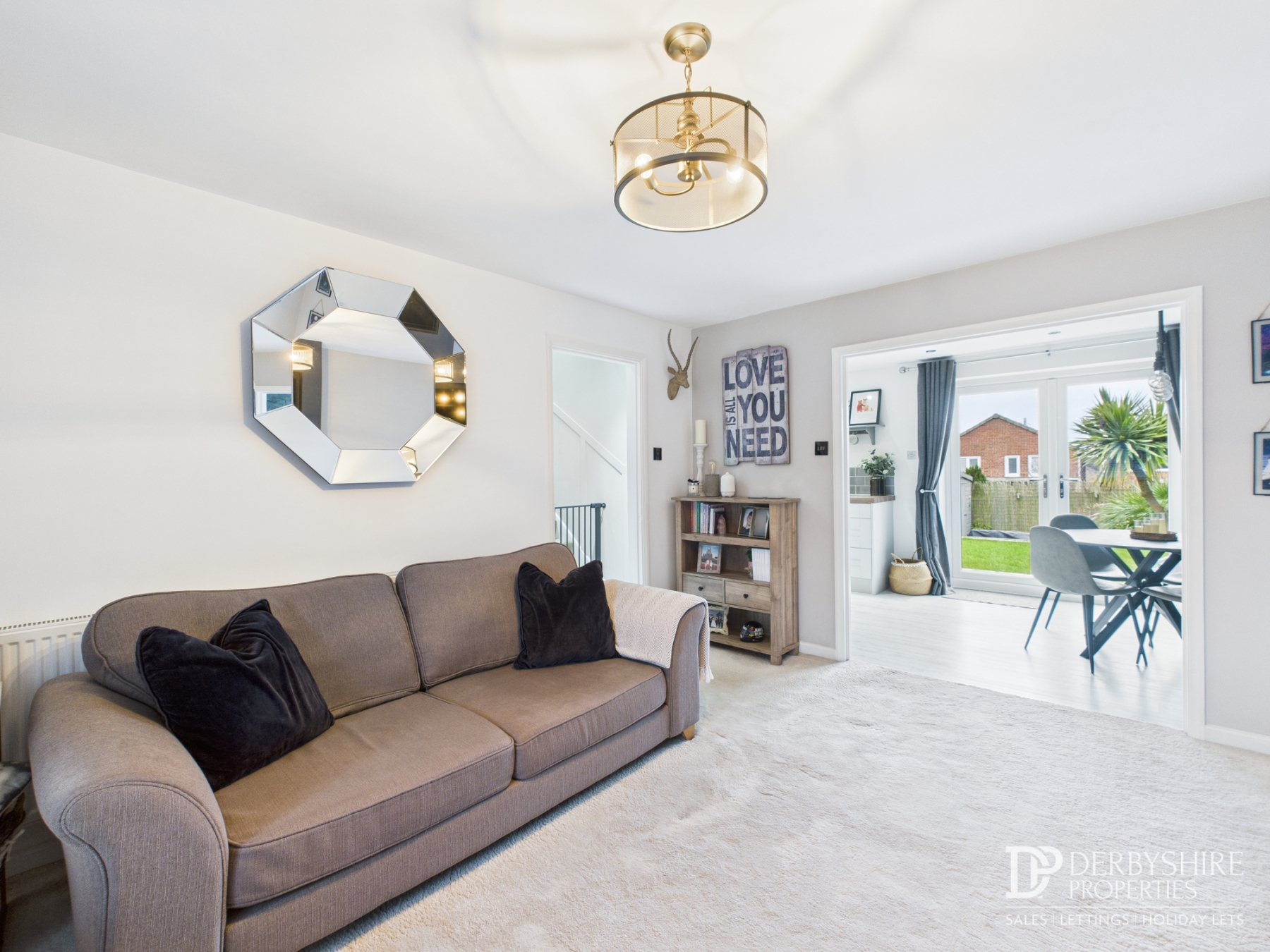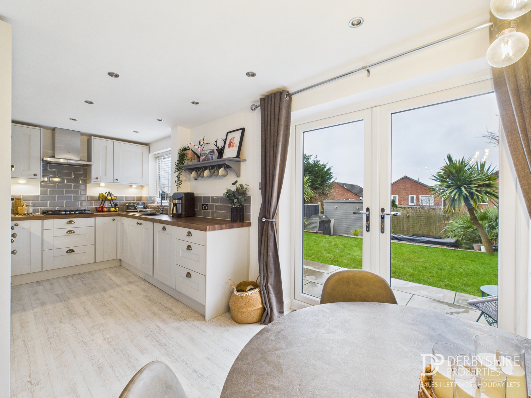 The dining area continues the same flooring and lighting and benefits from double-glazed French doors opening onto the rear garden.