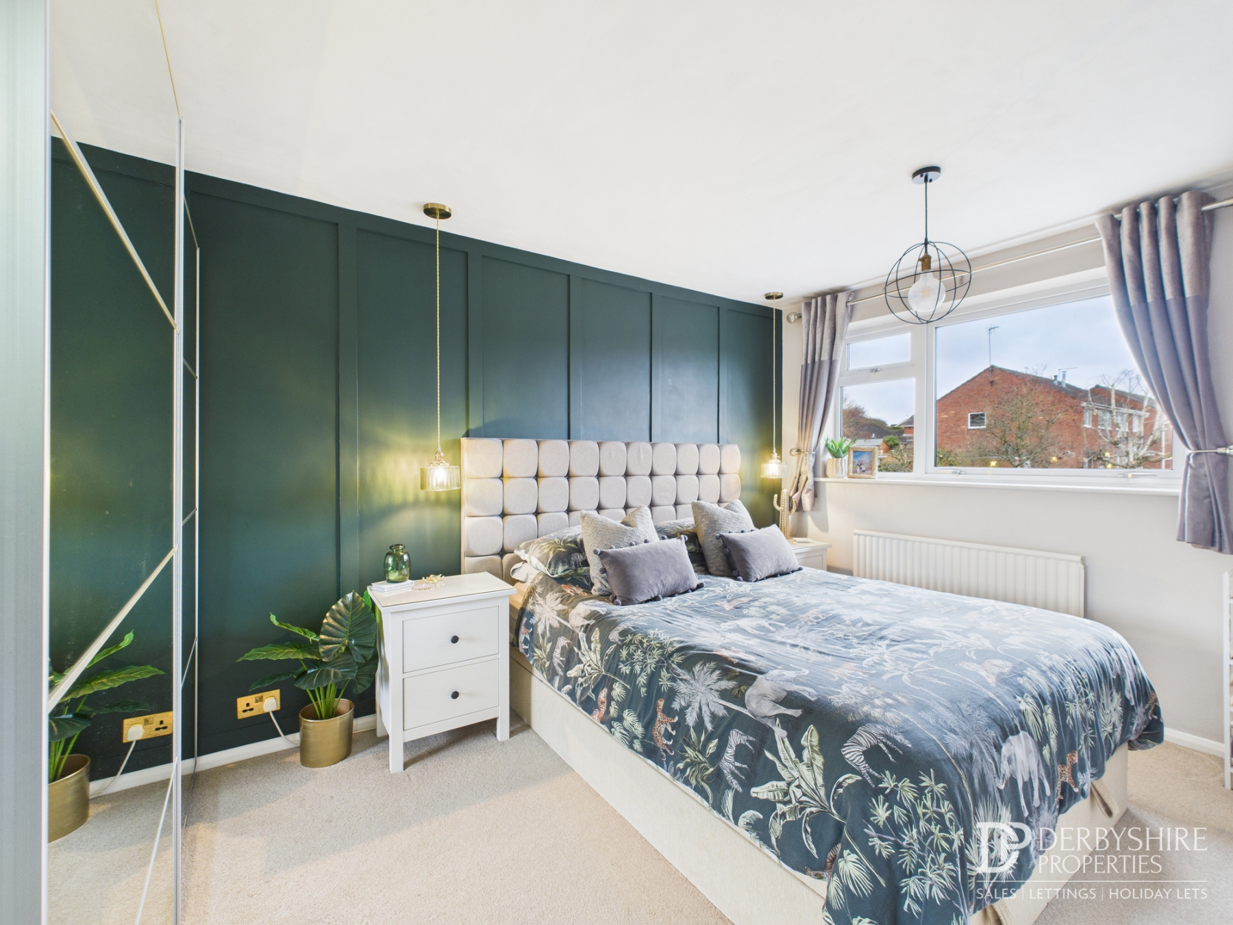 With double-glazed window to the front elevation, wall-mounted radiator, TV point, and space for wardrobes. A feature wood-clad wall provides a striking focal point.