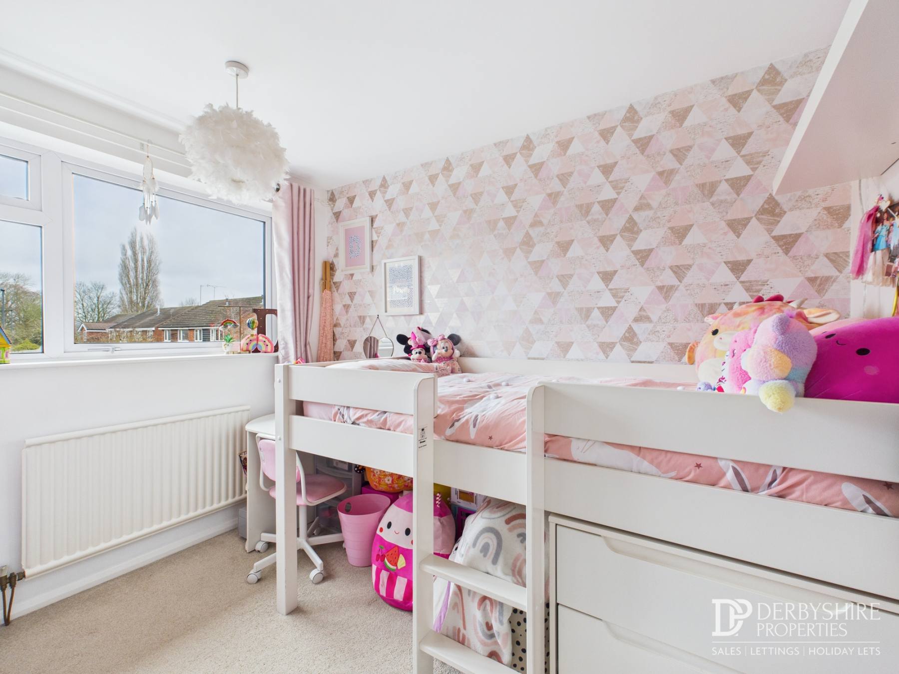Featuring a double-glazed window to the rear elevation with views over the garden and surrounding area, wall-mounted radiator, shelving, and space for bedroom furniture.