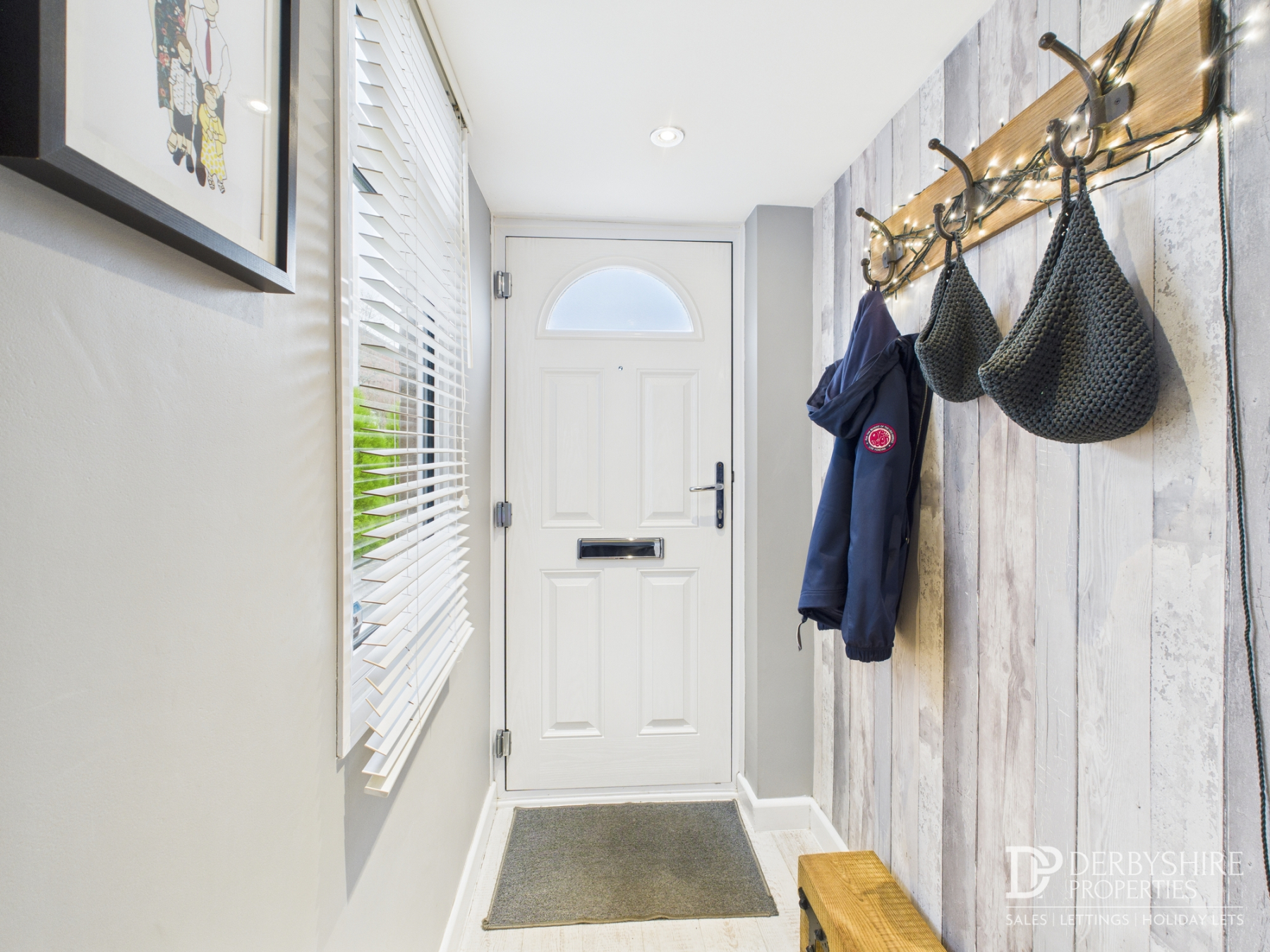 Entered via a composite door from the front elevation, featuring a double-glazed window to the side elevation, ceiling spotlights, and useful coat storage.