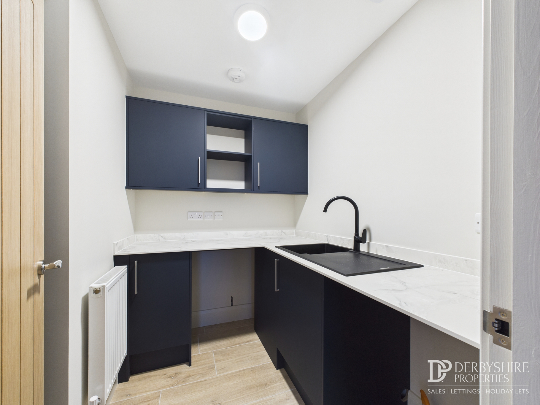 2.11m x 1.67m (6' 11" x 5' 6") Benefitting from cupboard space, stylish worktops and inset sink of its own, this utility room also benefits from wall mounted radiator, extractor unit and double glazed window to side elevation.