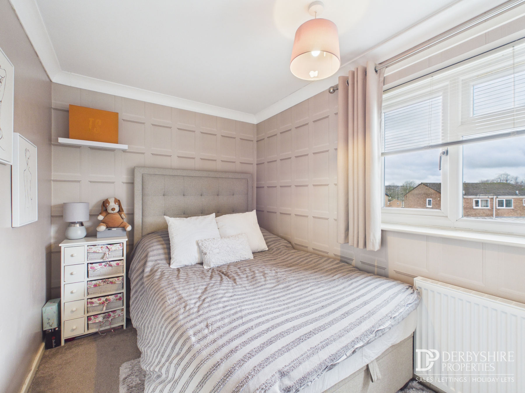 With double glazed window to the rear elevation, decorative ceiling, attractive wall panelling and useful built-in storage cupboard/wardrobe.