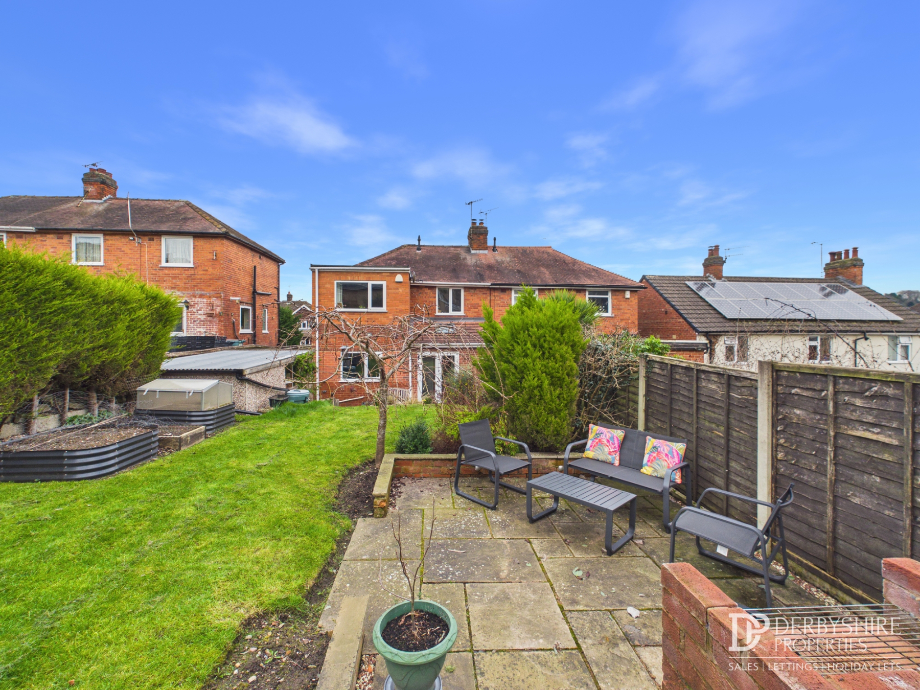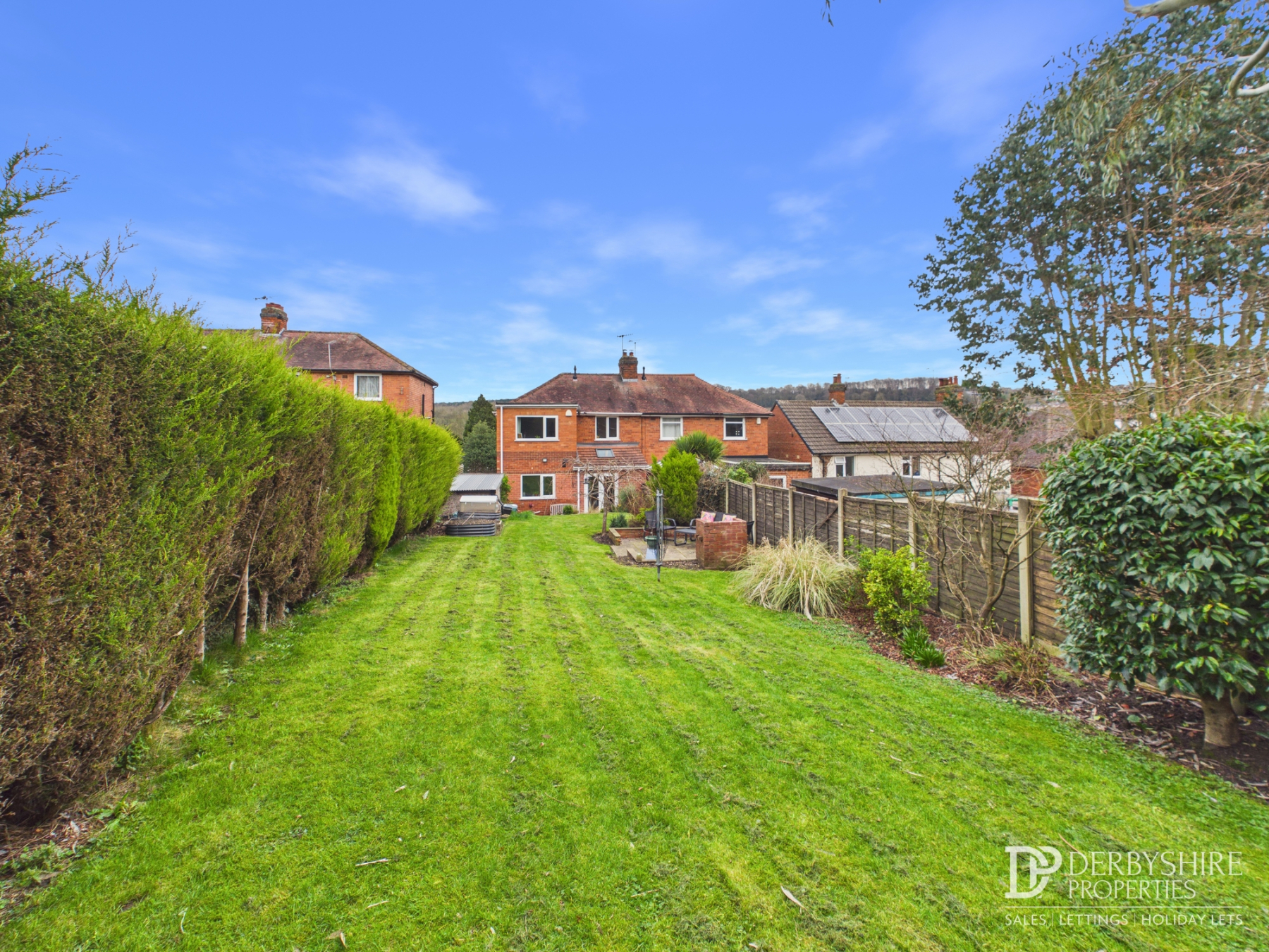 The rear garden offers a private gravelled seating area with steps leading up to a sizeable lawn with stocked flower beds and borders, along with conifer screening that provides a high level of privacy. A further paved seating area is located at the top of the garden, enjoying elevated views across Belper, all enclosed by timber fence boundaries.