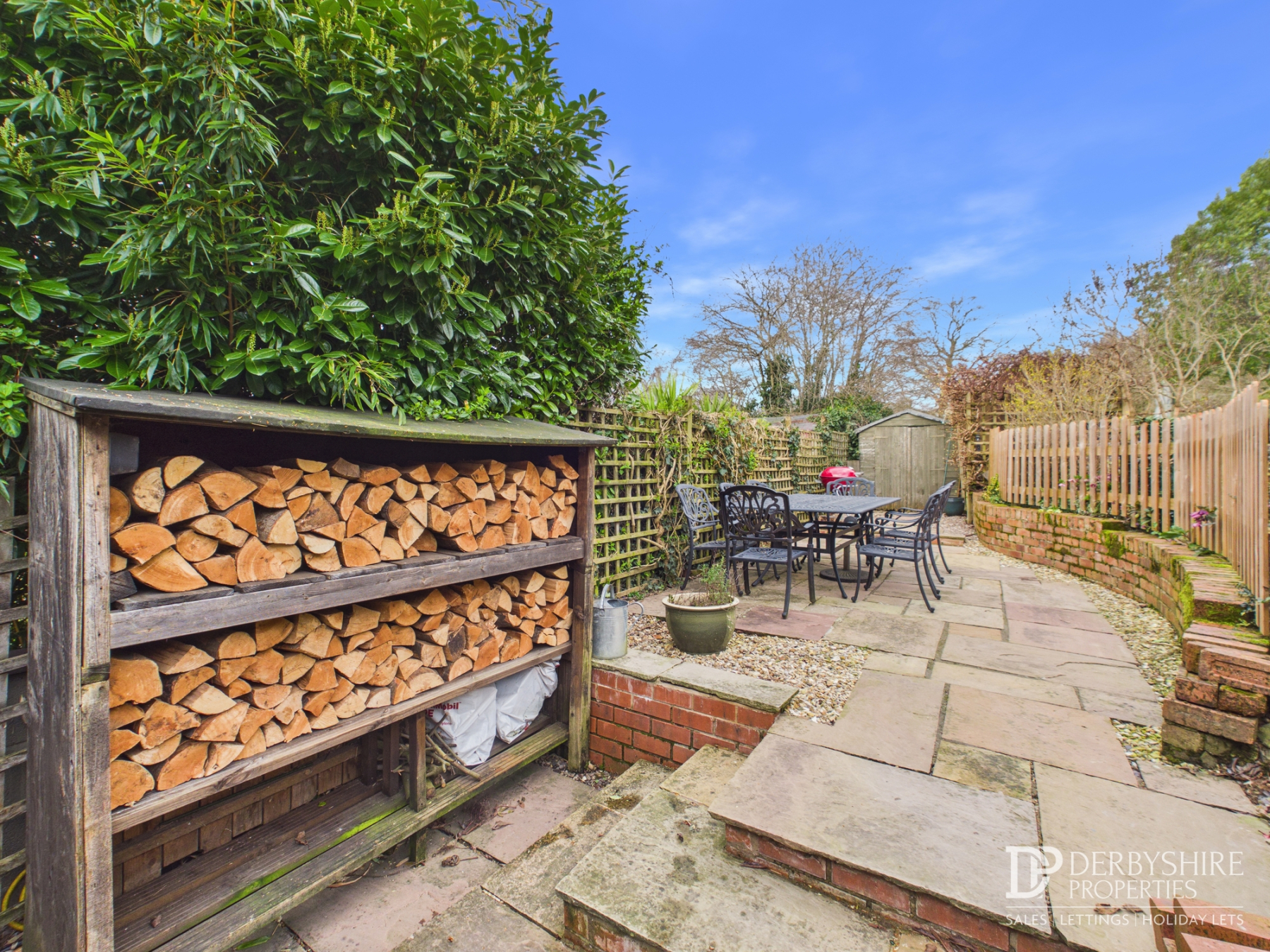 The garden is thoughtfully divided into several functional areas, including a stunning entertaining space with slate paving, open views, and a barbecue area, along with a timber garden shed. Additional features include a further storage shed, vegetable plot, log store, garden trellis, outside lighting, and water tap.