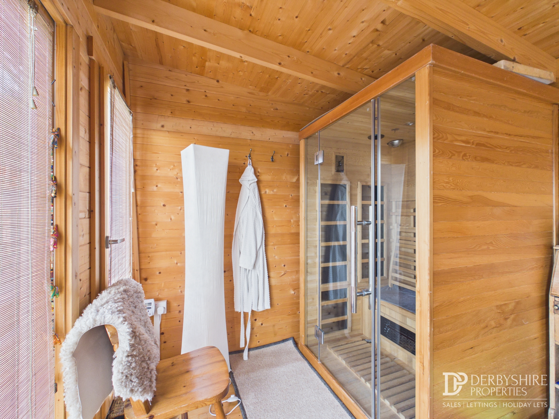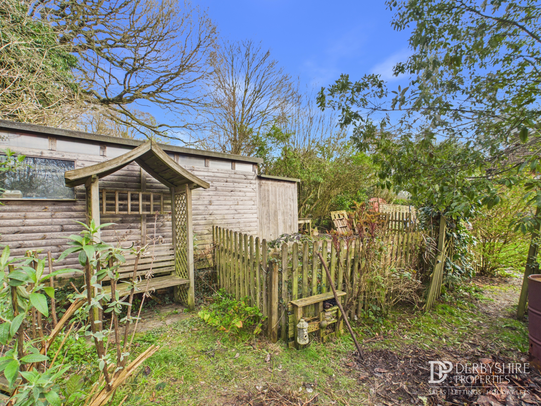 Positioned close to the property is a timber outbuilding, currently utilised as a home office/yoga studio, benefiting from light, power, and heating.