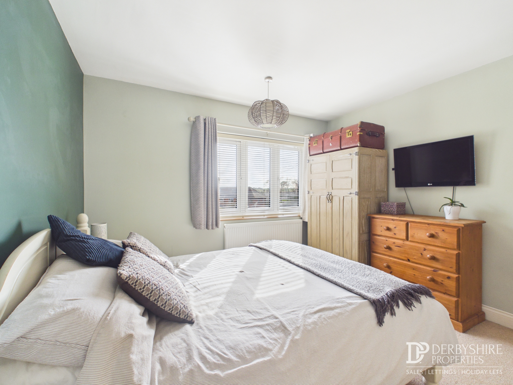 A double bedroom with double glazed window to the front elevation, wall-mounted radiator, TV point, and space for wardrobes.