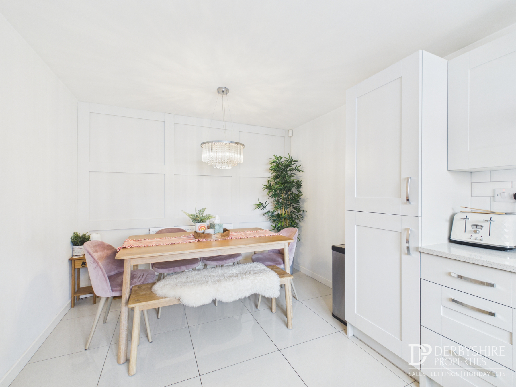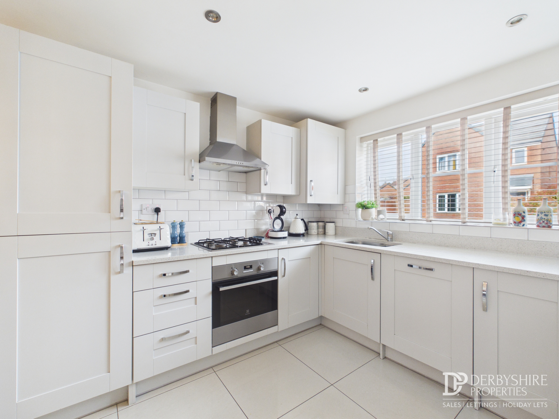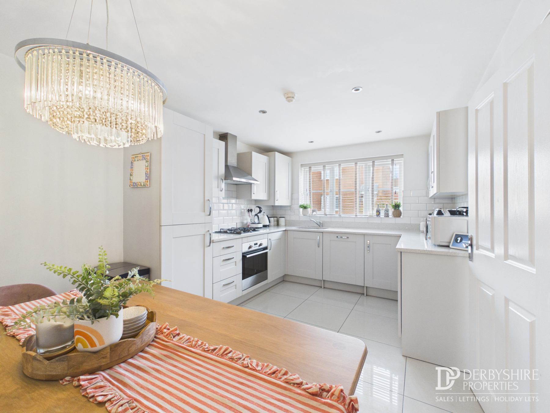 Derbyshire Properties are delighted to bring to the market this stylish three-storey home, ideal for growing families and those seeking contemporary living. The accommodation briefly comprises: entrance hall, guest cloakroom/WC, kitchen/dining room, and lounge to the ground floor. The first floor offers three well-proportioned bedrooms and a family bathroom, whilst the second floor boasts an impressive master suite complete with en-suite shower room. Externally, the property benefits from a landscaped front garden, a side driveway providing off-road parking for two vehicles, and a detached garage with power and lighting. To the rear is a fully enclosed garden featuring a full-width patio, lawn, and raised sleeper-edged borders—perfect for outdoor entertaining. An early internal inspection is highly recommended to fully appreciate the quality and space on offer.