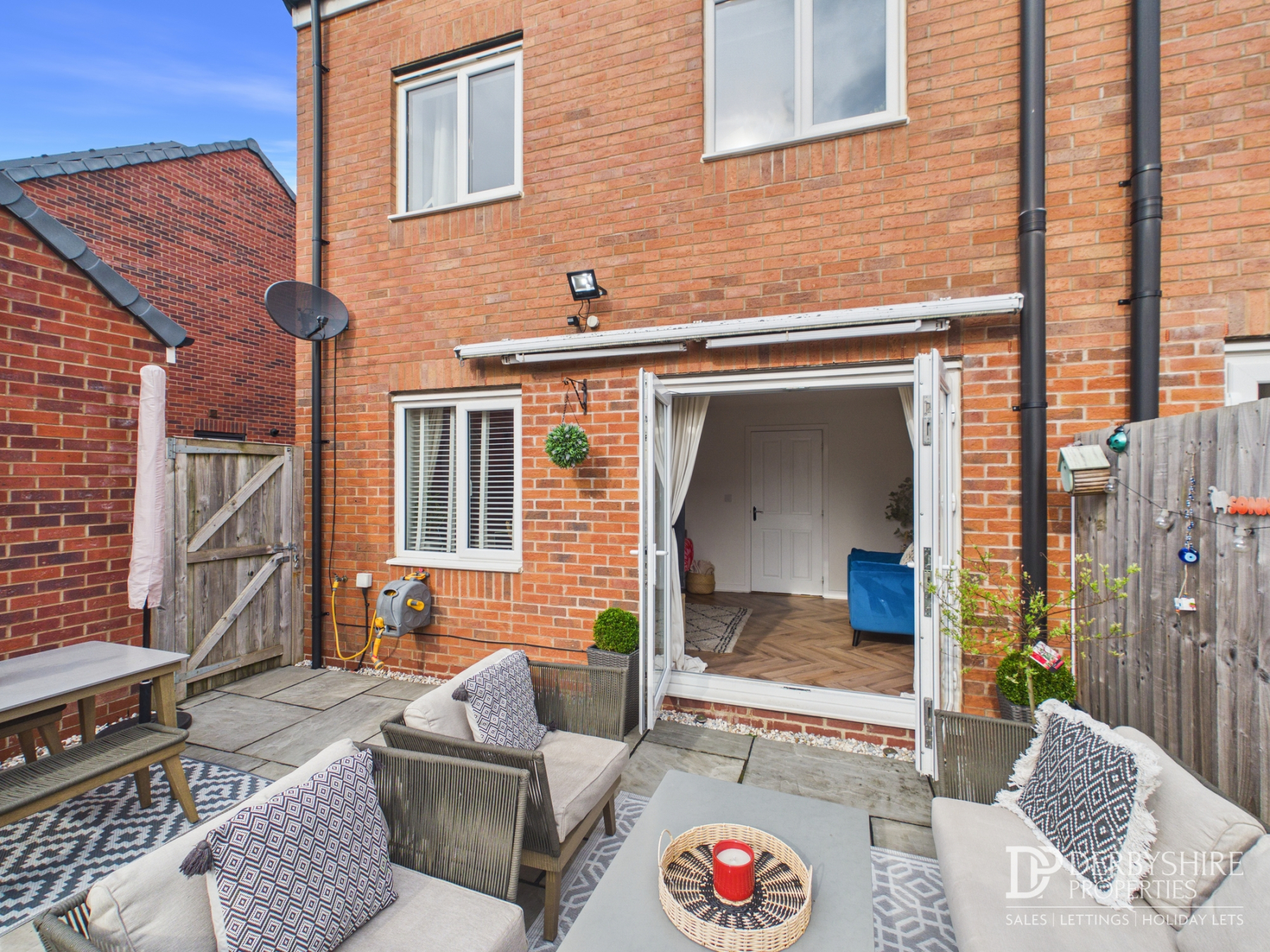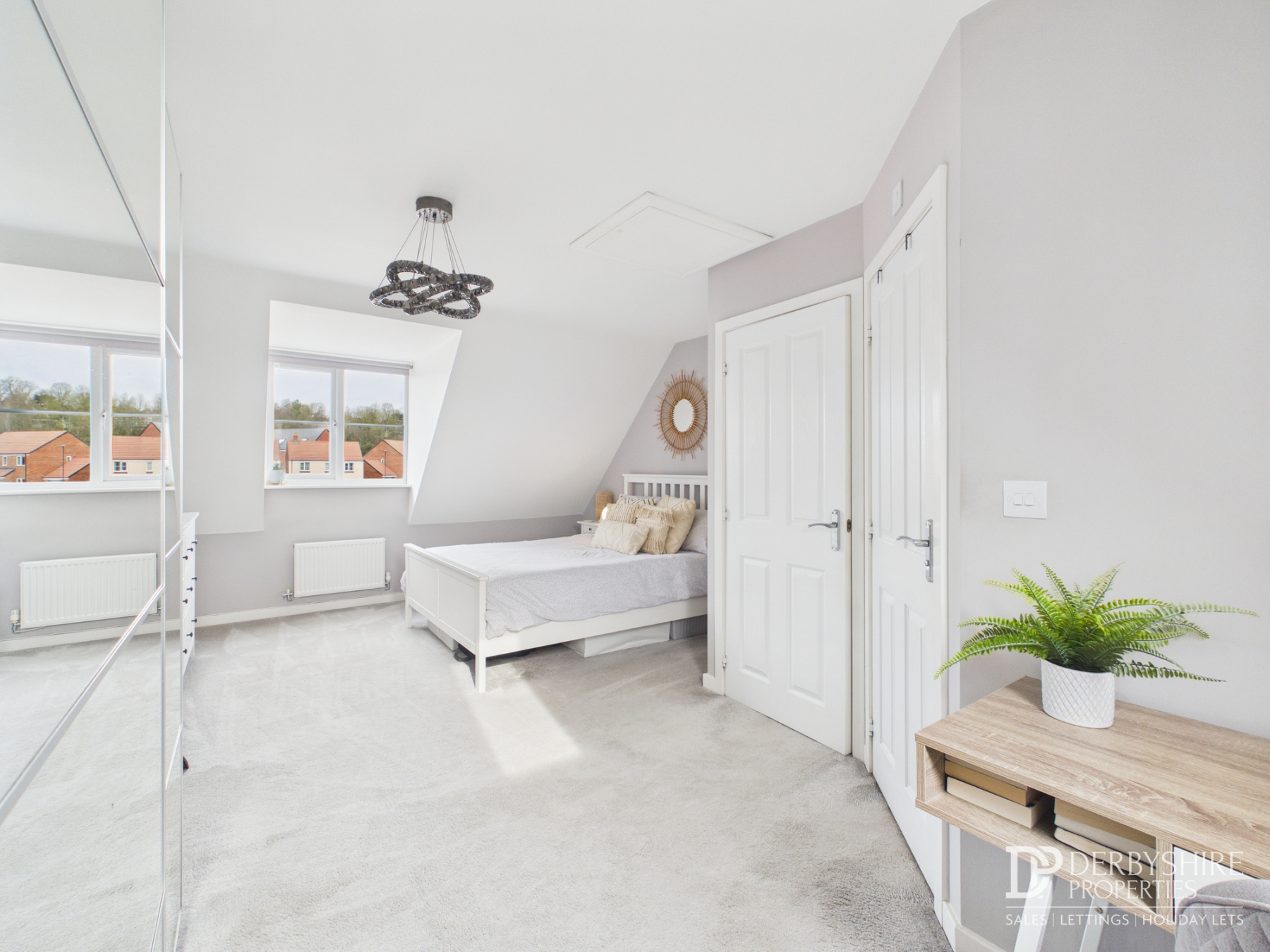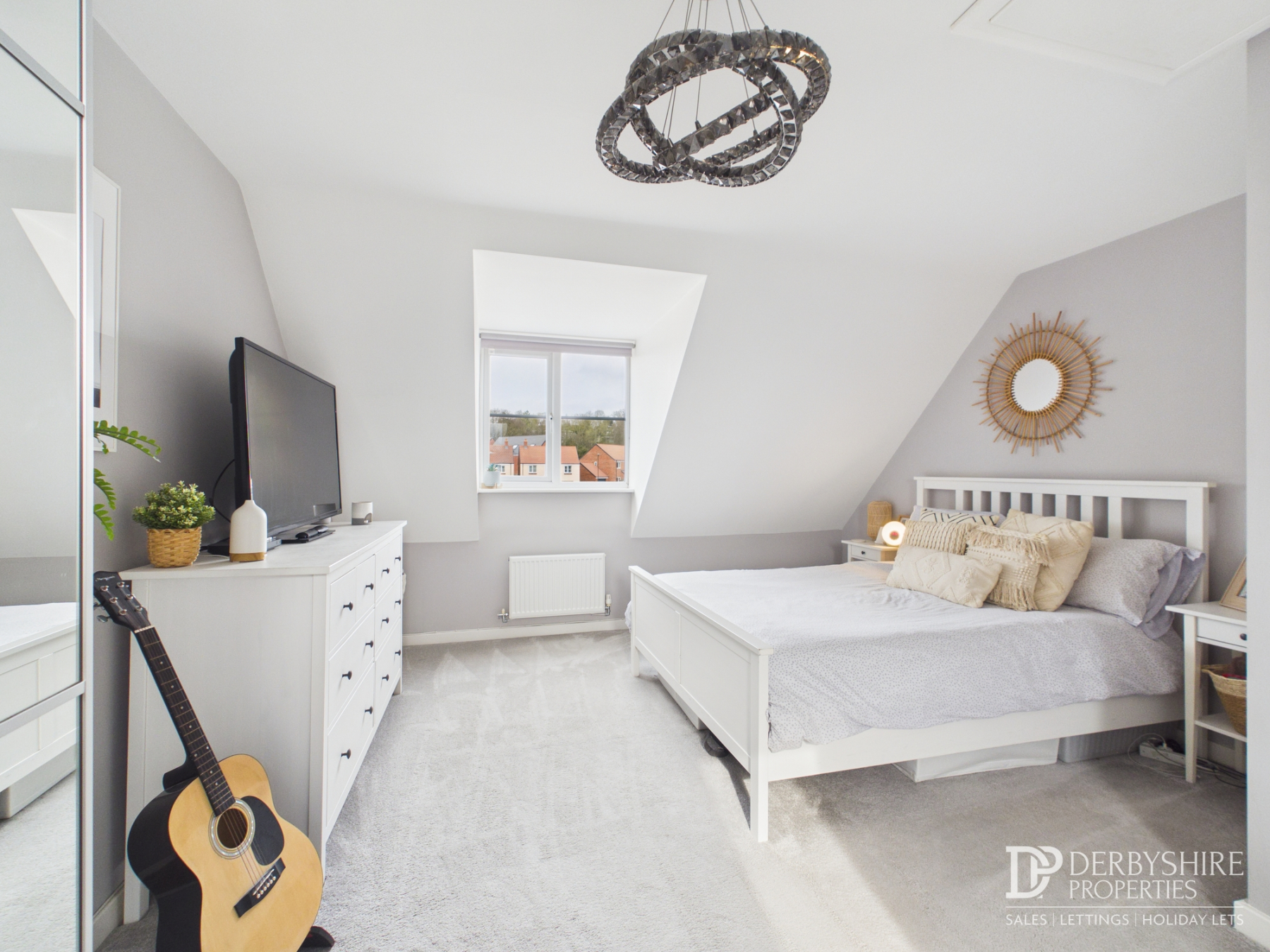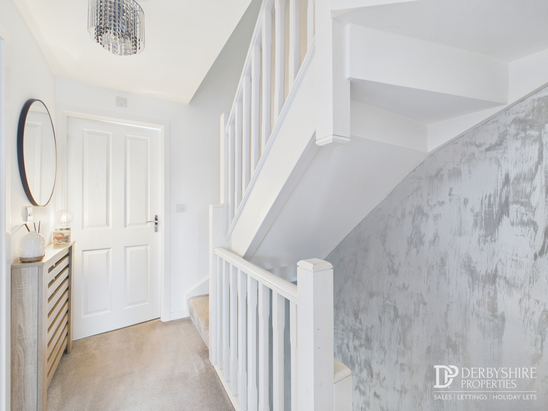 Derbyshire Properties are delighted to bring to the market this stylish three-storey home, ideal for growing families and those seeking contemporary living. The accommodation briefly comprises: entrance hall, guest cloakroom/WC, kitchen/dining room, and lounge to the ground floor. The first floor offers three well-proportioned bedrooms and a family bathroom, whilst the second floor boasts an impressive master suite complete with en-suite shower room. Externally, the property benefits from a landscaped front garden, a side driveway providing off-road parking for two vehicles, and a detached garage with power and lighting. To the rear is a fully enclosed garden featuring a full-width patio, lawn, and raised sleeper-edged borders—perfect for outdoor entertaining. An early internal inspection is highly recommended to fully appreciate the quality and space on offer.