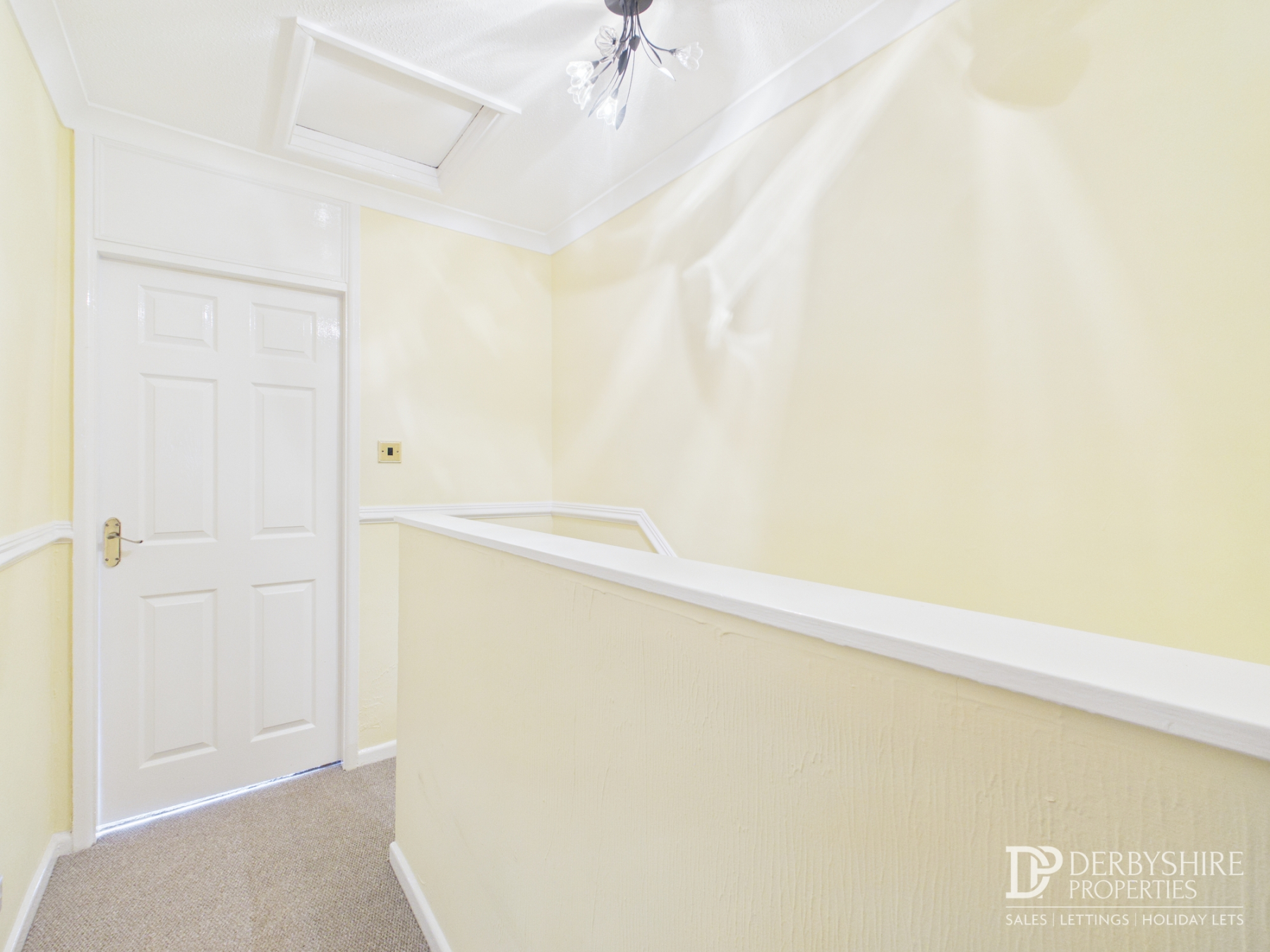 With loft access, decorative coving, dado rail, and doors leading to all bedrooms and the family bathroom.