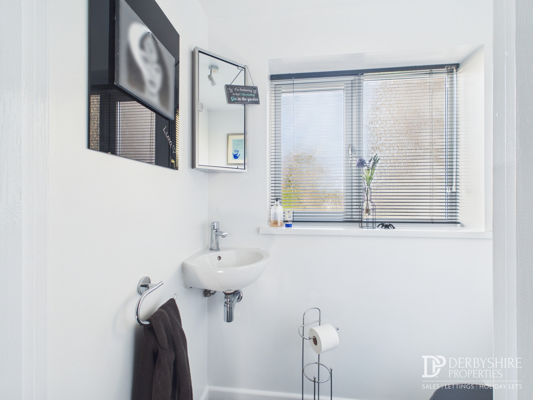 Comprising a low-level WC and corner-mounted wash hand basin, with a double-glazed obscured window to the front elevation.