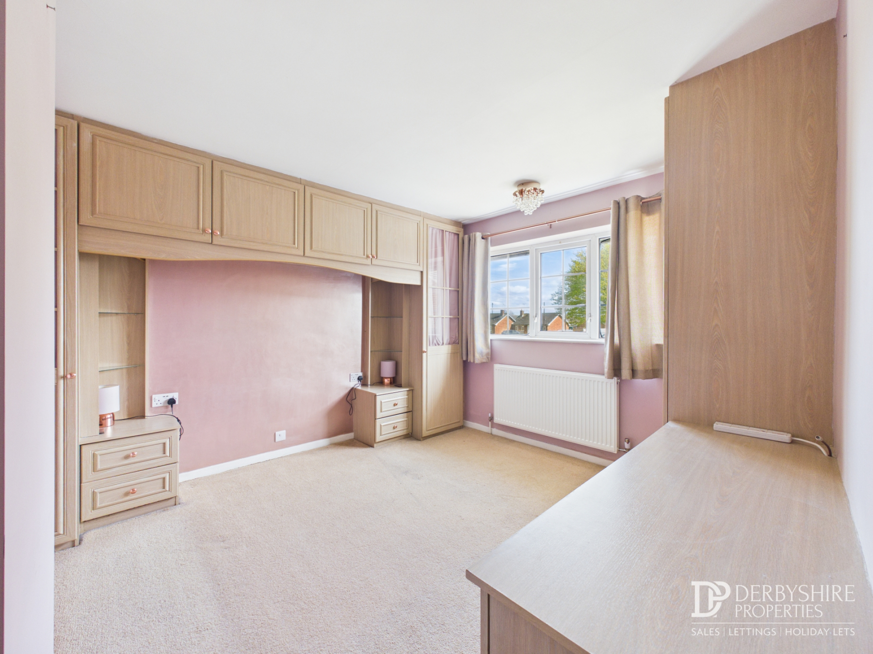 3.72m x 3.22m (12' 2" x 10' 7") With double glazed window to front elevation, wall mounted radiator and carpeted flooring. Fitted wardrobes and dresser unit provide valuable storage capacity.