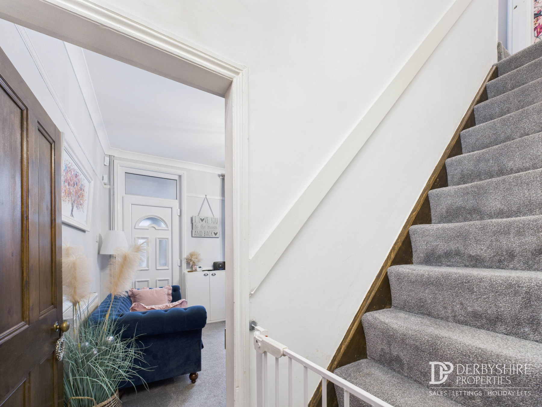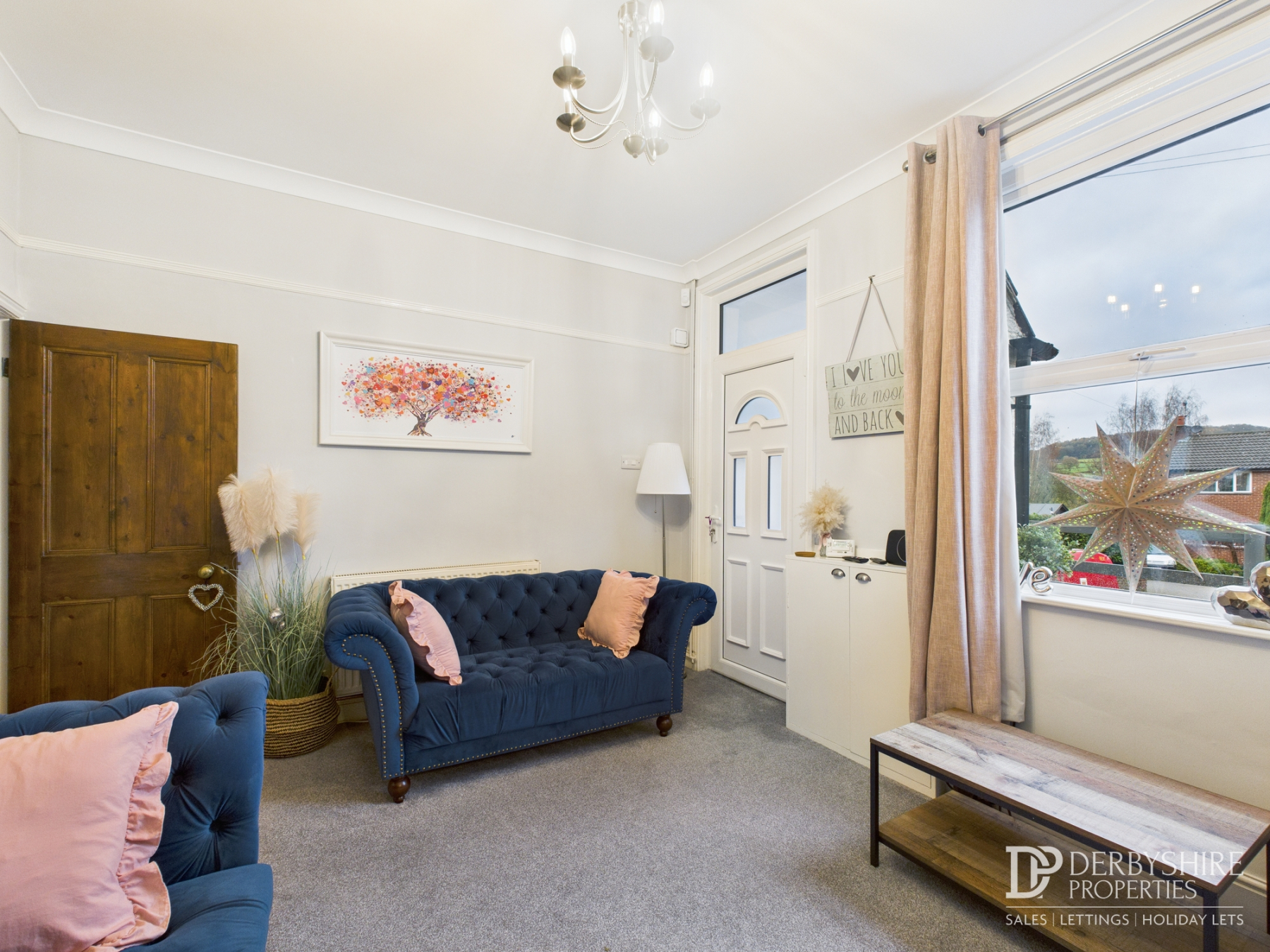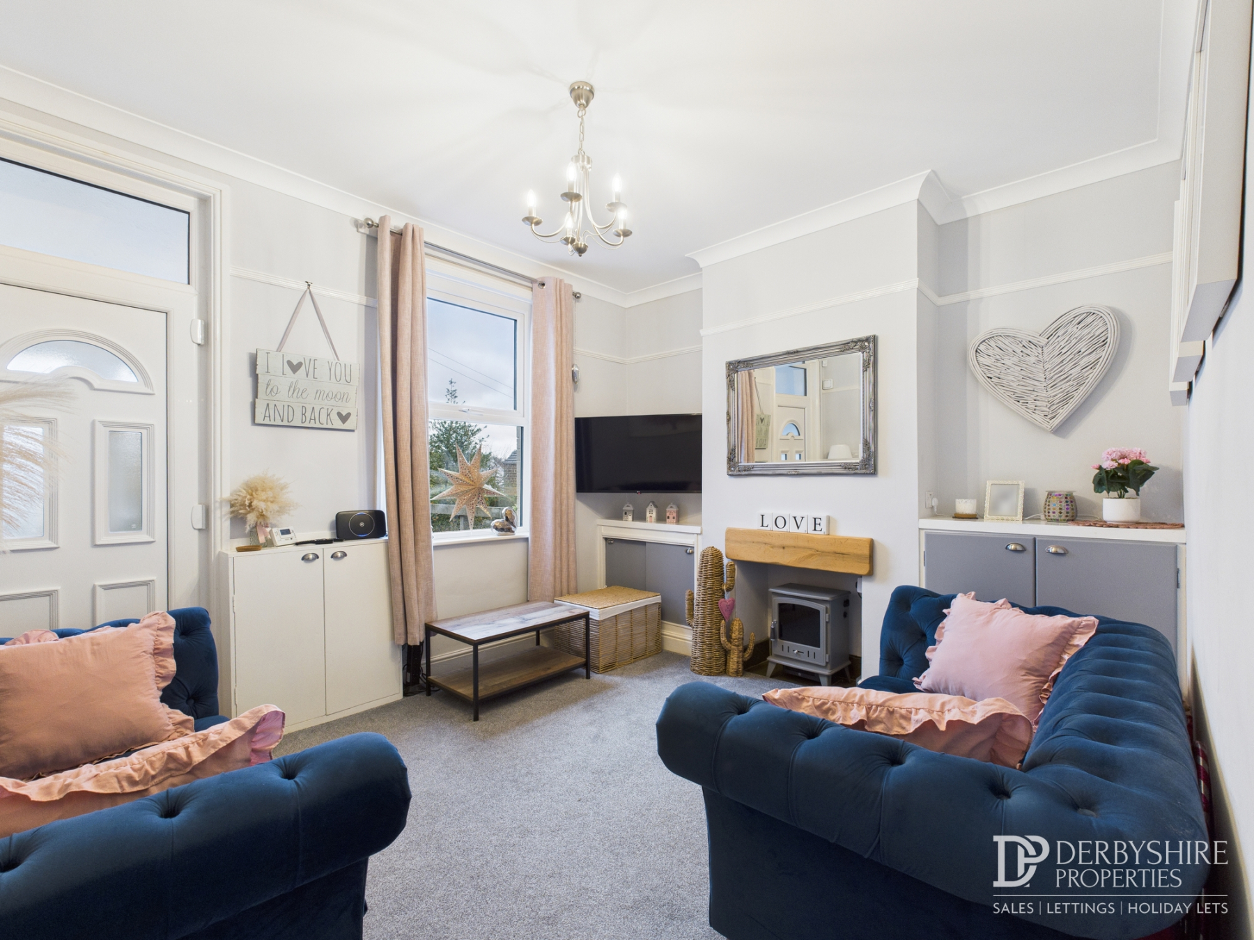 Derbyshire Properties are pleased to offer for sale this well-presented mid-terraced property, which provides generous accommodation arranged over two floors and is ideally suited to first-time buyers and young families. The accommodation briefly comprises: a welcoming living room, separate dining room, modern fitted kitchen and a useful rear entrance porch/utility room. To the first floor, a landing provides access to two double bedrooms and a contemporary bathroom suite. Externally, the property benefits from a professionally landscaped, tiered rear garden offering excellent outdoor entertaining space, while the low-maintenance front garden is enclosed by fencing with a slate finish. An early internal inspection is strongly recommended to fully appreciate the quality and presentation on offer.