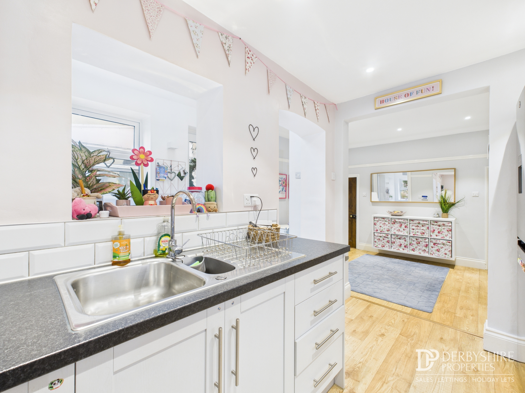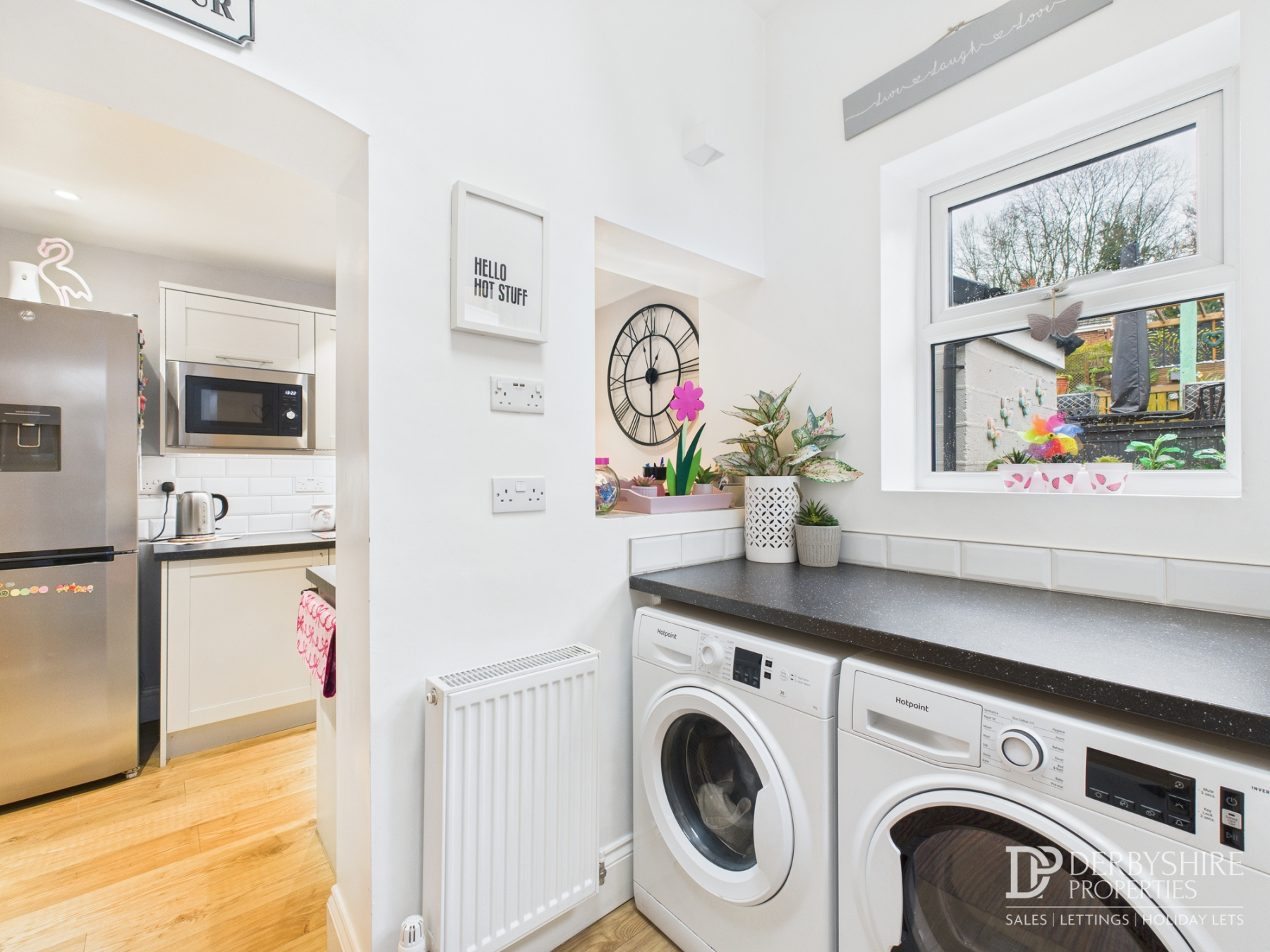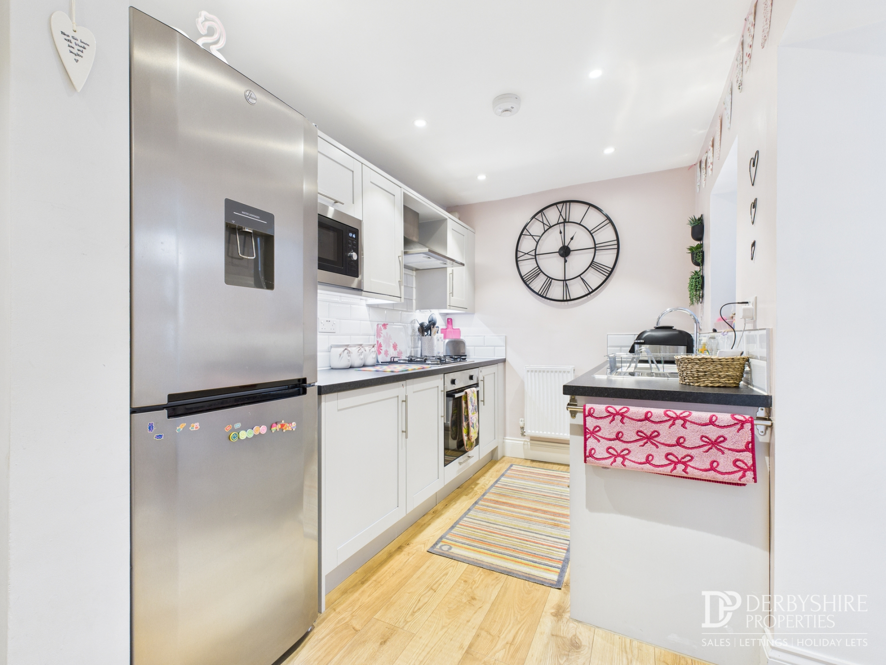 Derbyshire Properties are pleased to offer for sale this well-presented mid-terraced property, which provides generous accommodation arranged over two floors and is ideally suited to first-time buyers and young families. The accommodation briefly comprises: a welcoming living room, separate dining room, modern fitted kitchen and a useful rear entrance porch/utility room. To the first floor, a landing provides access to two double bedrooms and a contemporary bathroom suite. Externally, the property benefits from a professionally landscaped, tiered rear garden offering excellent outdoor entertaining space, while the low-maintenance front garden is enclosed by fencing with a slate finish. An early internal inspection is strongly recommended to fully appreciate the quality and presentation on offer.