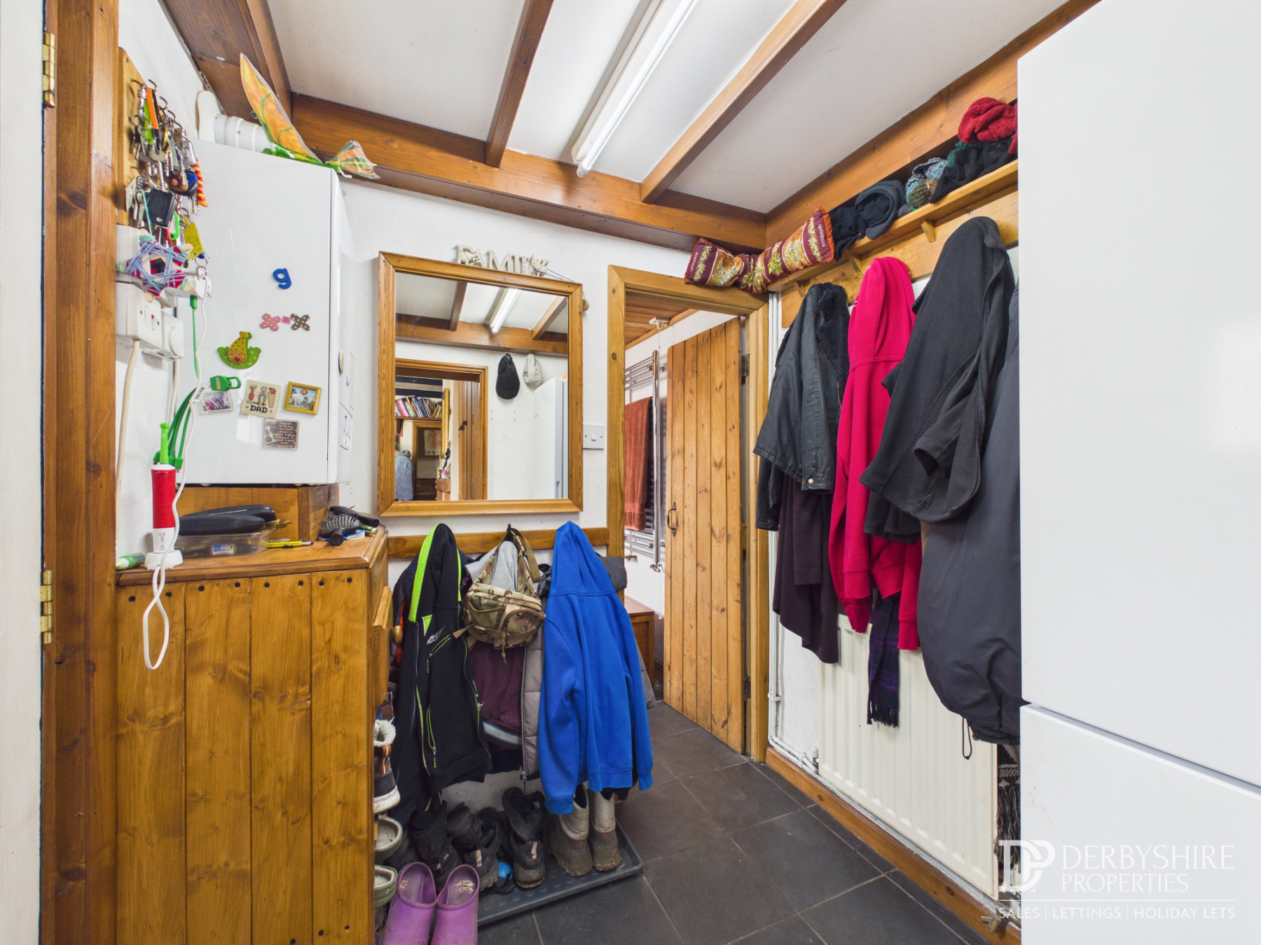 1.92m x 1.80m (6' 4" x 5' 11") Door to the rea. Tiled floor. Radiator. Space for fridge freezer. Wall mounted Baxi combi boiler.