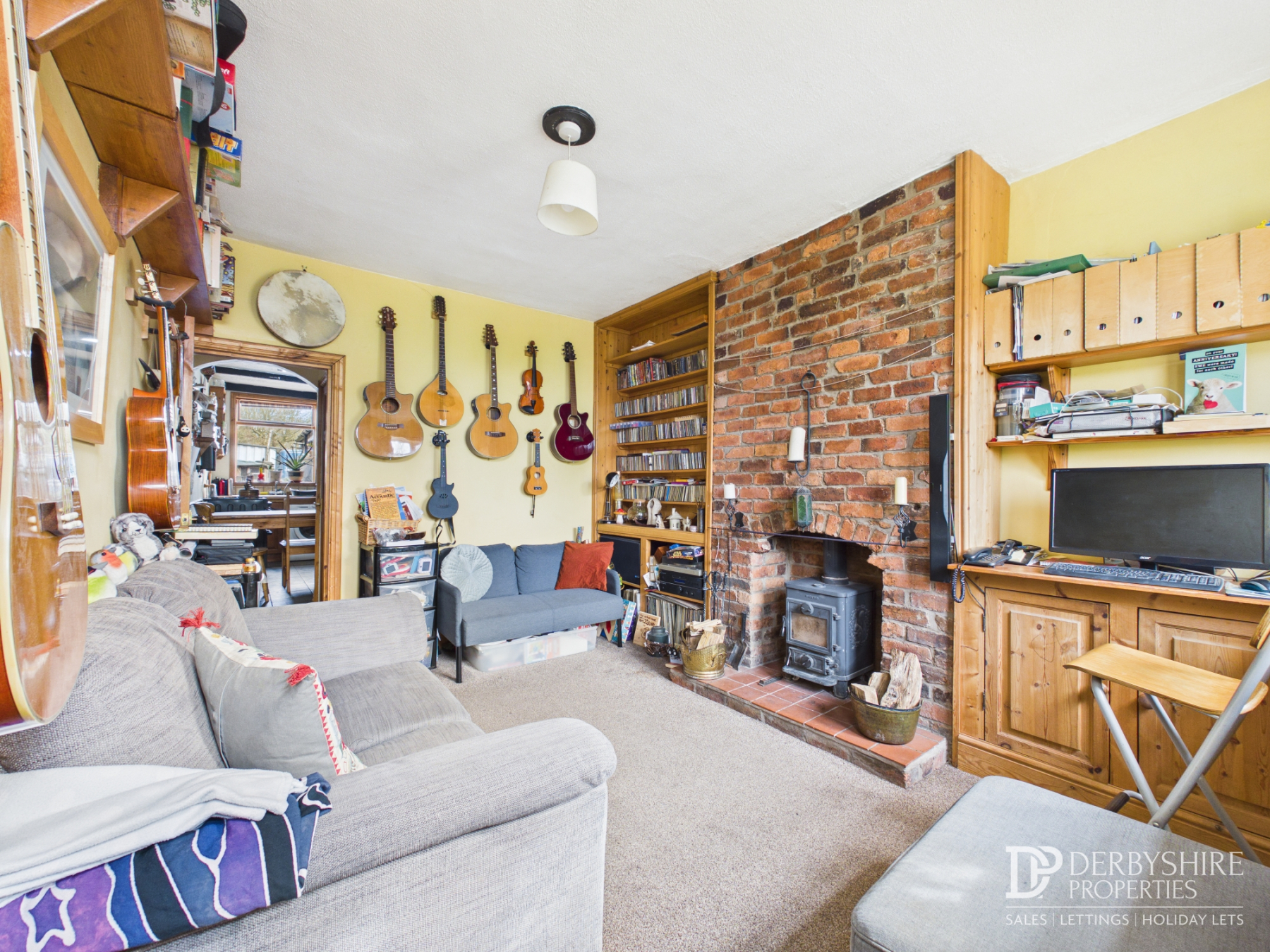 4.20m x 3.10m (13' 9" x 10' 2") Upvc double glazed front door to the Lounge. Window to the front. Brick chimney-breast with inset log burner and tiled hearth.