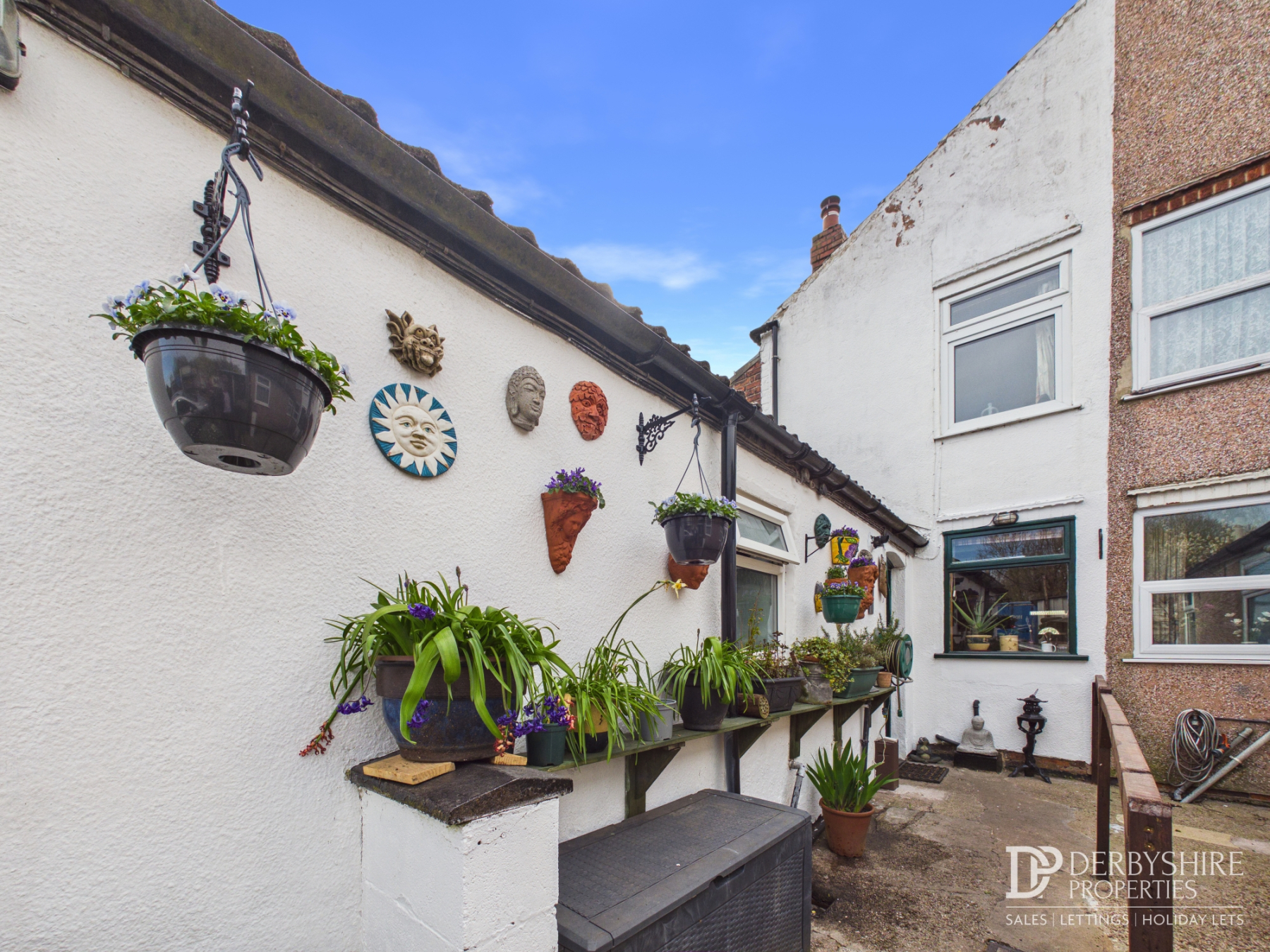 plants, with a stone-built front wall and pathway leading the front door. Pedestrian and