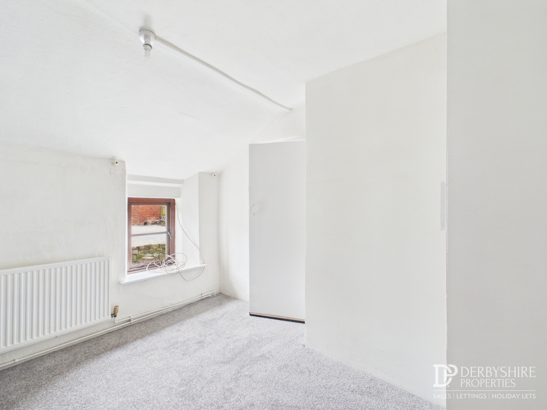 With front-facing window, wall-mounted radiator, and fitted storage cupboard.