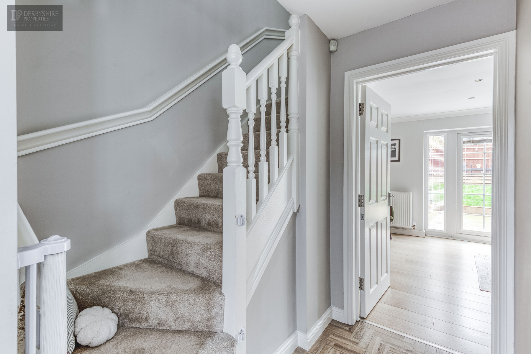 Derbyshire Properties is pleased to present this beautifully presented and spacious modern three-storey townhouse located in a quiet cul-de-sac. The current owners have meticulously improved the property, adding a stunning kitchen along with bespoke fixtures and fittings.