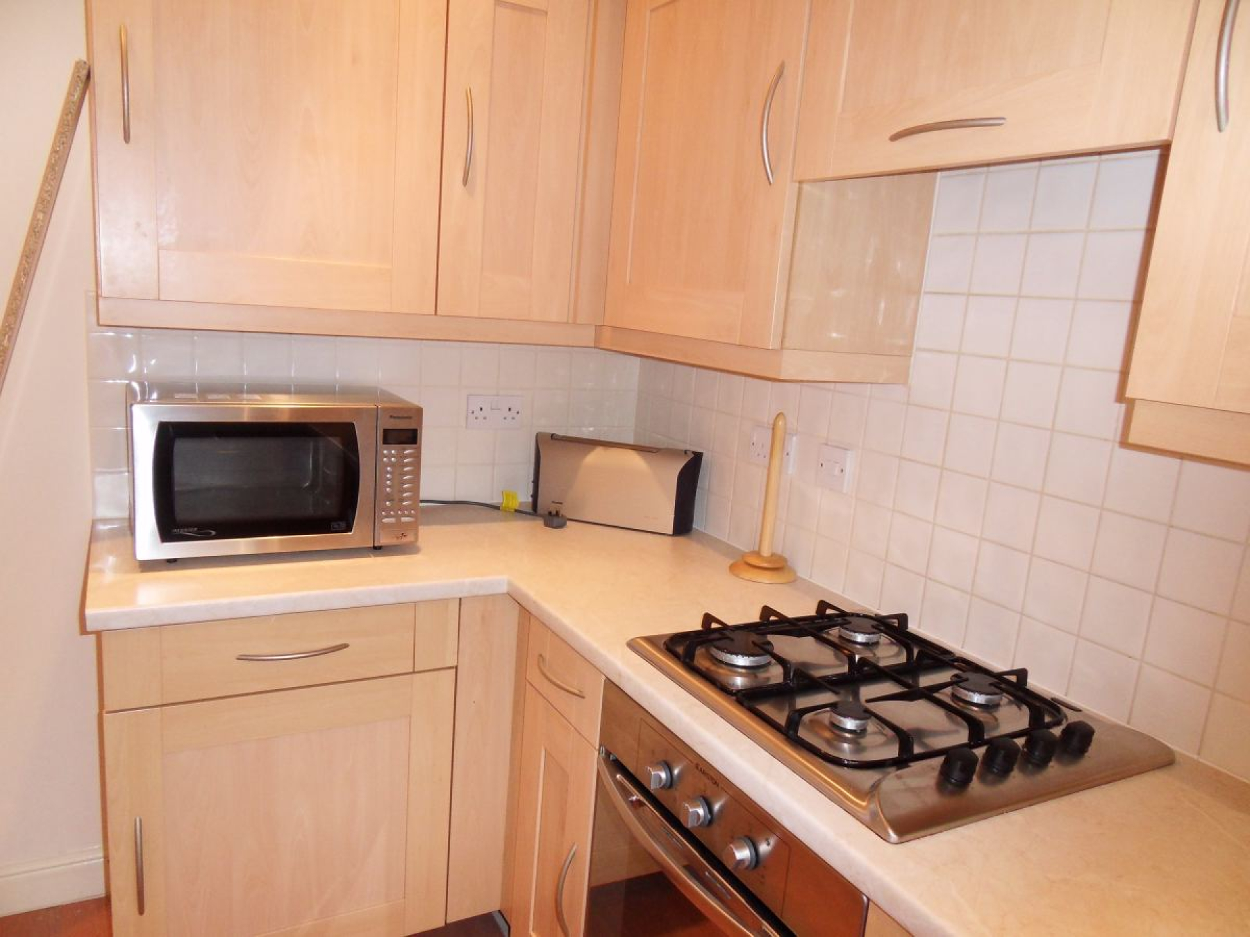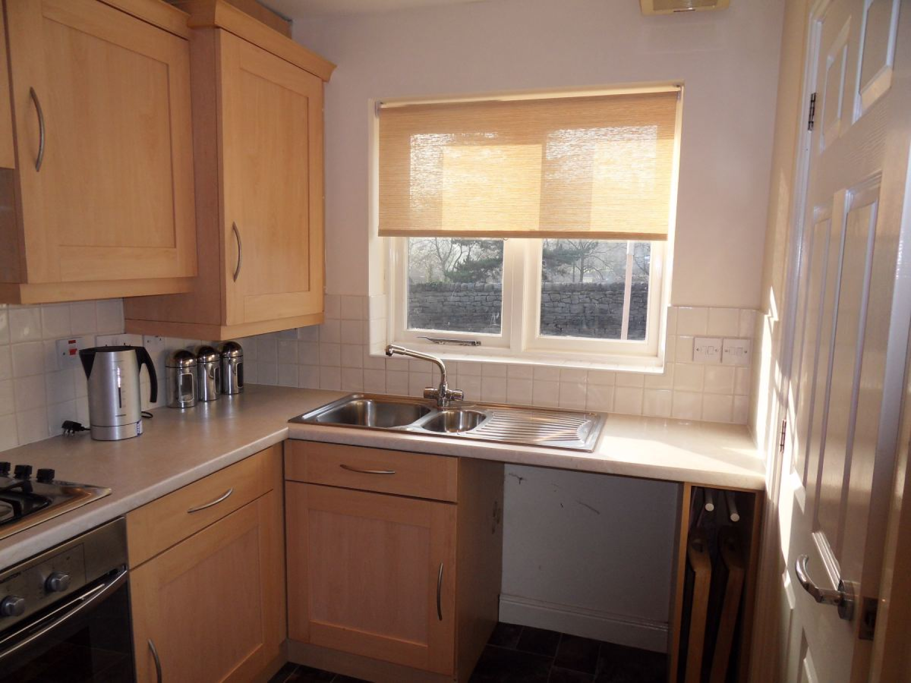 Mainly comprising of a range of matching wall and base mounted units with roll-top worksurfaces incorporating a 1 1/2 bowl stainless steel sink drainer unit with mixer taps and complimentary splashback areas. Integrated electric oven with four ring gas hob over an extractor fan, space and plumbing for automatic washing machine and double glazed window.