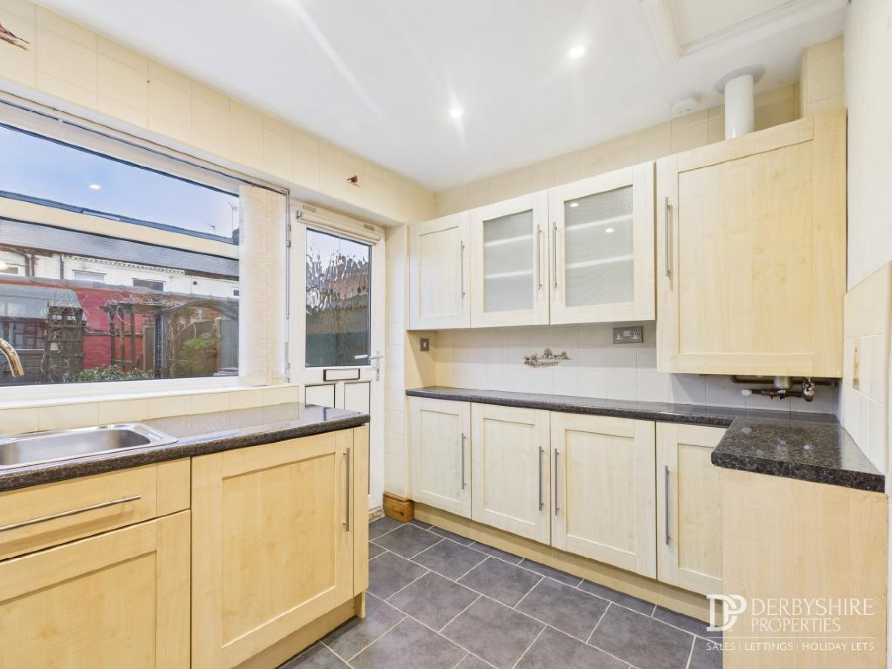 There are a range of amenities within South Normanton including a co-operative supermarket, local bakery, shops, takeaway outlets and schools. The property has spacious accommodation which briefly comprises; through Lounge/ Diner a fitted Kitchen with a range of built in wall and base units incorporating plumbing for an automatic washing machine, space for fridge freezer and a built in oven, hob and extractor. On the first floor there are two good sized bedrooms one having the benefit of built in wardrobes. There is a modern Bathroom fitted with a double shower enclosure, pedestal wash hand basin and low flush w.c. Outside the property has an enclosed rear garden having a lawned area, mature borders and shrubs.